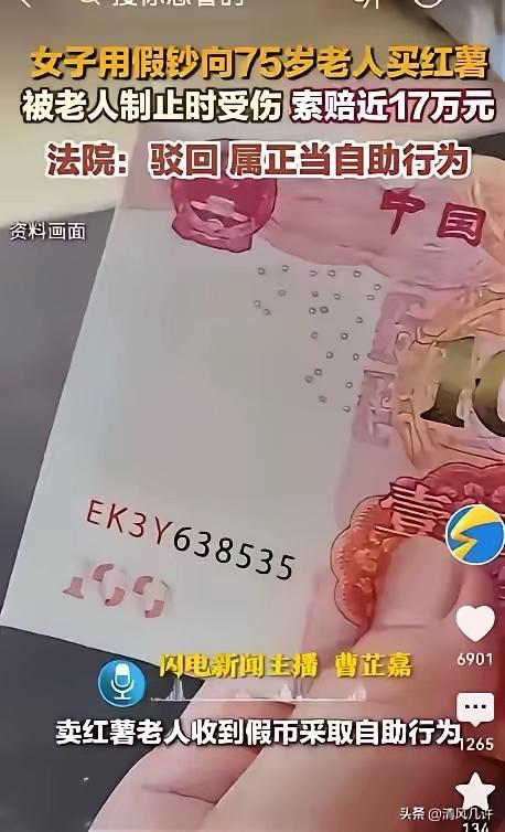 南京75岁老人卖红薯遭假币,扭送骗子反被索赔17万,法院判决大快人心 南京,75岁老人卖红薯,一女子用假币购买老人红薯。几天后,女子再次去老人摊前买红薯,被老人及其女儿认出,在把她扭送去派出所的过程中,致女子面部受伤。 女子受伤后,当即向老人及其女儿提出索赔要求,后续更是直接将二人告上法庭,索赔金额接近17万元,其中涵盖了医疗费、误工费、精神损害抚慰金等多项费用。 这起事件刚曝光时,无数网友气得拍案而起,见过恶人先告状,没见过这么颠倒黑白的!要知道,75岁的老人,风吹日晒守着红薯摊,一斤红薯卖不了几块钱,一天忙活下来,赚的都是辛苦钱、血汗钱,那点收入,可能是老人的养老钱、生活费,每一分都攥得格外紧。 女子第一次用假币骗老人时,老人发现后满心憋屈,却没抓到人,只能自认倒霉,看着手里的假币,心疼得好几天都没缓过来。本以为这事就这么过去了,没想到几天后,女子竟还敢大摇大摆回到老人的摊位前,依旧想用假币占便宜,丝毫没有愧疚之心,甚至觉得老人好欺负。 换作谁能忍?老人一眼认出这个骗自己的人,当即和女儿一起上前阻拦,目的很简单,就是把这个用假币的骗子扭送到派出所,让她为自己的行为负责,拿回自己被骗的血汗钱。在拉扯控制的过程中,女子挣扎反抗,才不慎面部受伤,全程老人和女儿并没有刻意殴打,只是为了防止她逃跑,采取的必要控制手段,而且控制住女子后,父女俩第一时间就报了警,全程合规合理。 可女子倒好,完全不提自己使用假币、欺诈老人的违法行为,反倒抓住自己受伤这一点,倒打一耙,把老人和其女儿告上法庭,张口就要近17万赔偿。她算得精,医疗费、误工费、精神损害抚慰金一项不落,试图用“受伤”博取同情,把自己伪装成受害者,妄图让守规矩的老人为她的不法行为买单,这种行径,既违背道德,更让人不齿。 消息传开后,舆论彻底炸了锅。大家纷纷为老人鸣不平,75岁的老人,靠体力谋生,本本分分做生意,没偷没抢,反倒被骗子坑,抓骗子还要被索赔,这要是判老人赔钱,以后谁还敢制止违法行为?谁还敢维护自己的合法权益?这不仅是寒了老人的心,更是寒了所有守法公民的心。 而从法律层面来看,女子的诉求本就站不住脚。根据我国民法典规定,合法权益受到侵害,情况紧迫且不能及时获得国家机关保护,不立即采取措施将使其合法权益受到难以弥补的损害的,受害人可以在必要范围内采取合理的自助行为。老人遭遇假币欺诈,属于财产权被侵害,女子试图逃跑,情况紧迫,老人和女儿为防止其逃离、等待警方处理,采取的拉扯、控制行为,完全属于正当自助行为,并非故意伤害。 后续警方调查也查实,女子非法持有并使用假币金额达600元,依法对其处以行政拘留7日的处罚,这也坐实了女子的违法行为。反观老人,全程都是为了维护自身合法权益,没有任何过错。 法院的最终判决,更是大快人心,直接驳回了女子的全部诉讼请求。承办法官那句“法不能向不法让步”,说到了所有人的心坎里。这个判决,不是偏袒老人,而是守住了法律的底线,守住了社会的公平正义,更是对所有不法分子的震慑:别想仗着自己受伤,就颠倒黑白、敲诈勒索,违法在先,就别想拿所谓的“受伤”要挟法律、要挟好人。 更让人唏嘘的是,老人收到判决书的那天,正好是他的生日,这份公正的判决,是老人收到的最好的生日礼物。可惜的是,老人后来因病离世,生前一直挂念着这件事,好在法律还了他一个公道,让他走得安心。 这起案件也给所有人提了醒:生活中,我们遇到不法侵害时,在合理范围内采取自助行为维护自身权益,法律会为我们撑腰;而那些妄图颠倒是非、恶人先告状的人,最终只会自食恶果。道德和法律,从来都不会纵容恶行,更不会亏待每一个本分善良的人。 各位读者你们怎么看?欢迎在评论区讨论。