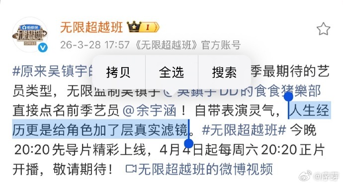 原来吴镇宇的白月光是余宇涵 无限超越班3里吴镇宇早就点拨过余宇涵,人生经历都是表演的情绪库,太用心了