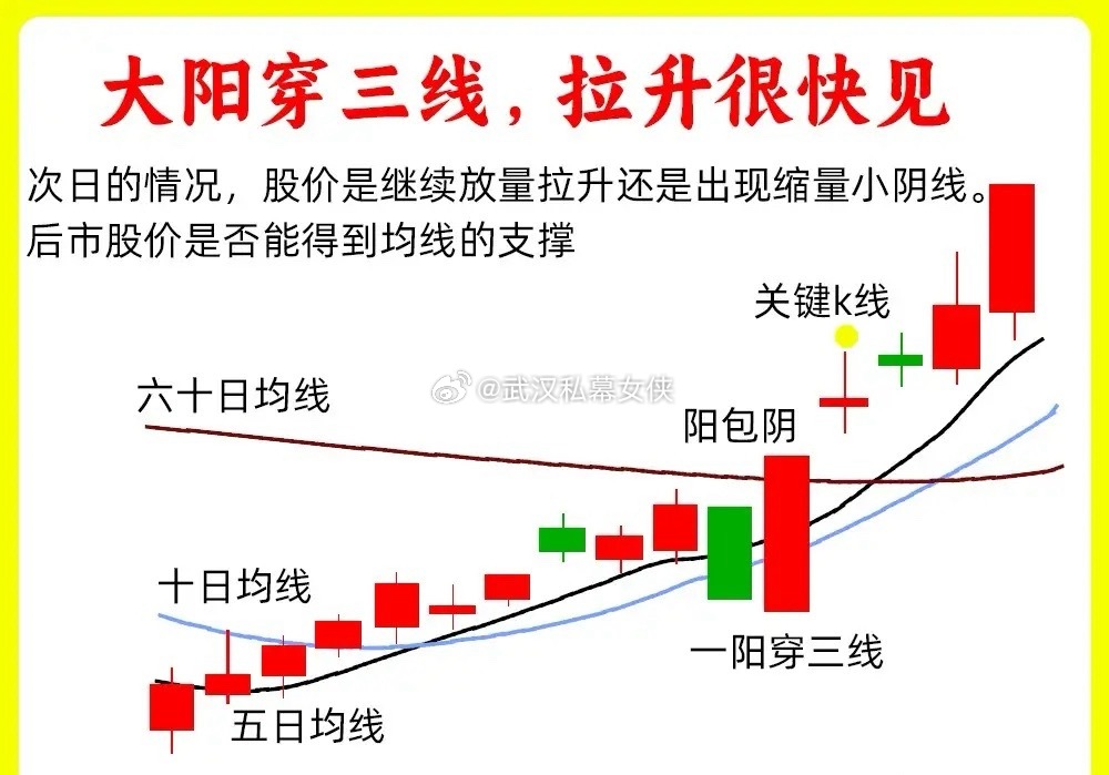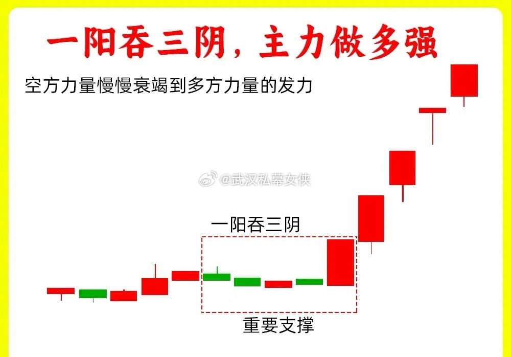 注意了!股价在底部一旦出现这四种形态,我会毫不犹豫关注一起,为什么这么说,往往趋势发生变化的时候,都会出现弱转强,强势洗盘,空头衰竭的形态。还是老规矩,点赞收藏或评论六六六支持一下,女侠每天分享炒股干货,以免以后想温习找不到了‘’一、三阴不吃阳股价在低位出现一根中大阳线,可能是涨停板,同时成交量出现放大,而次日,股价开始回调,小幅度的回调,,下跌幅度很小,出现这样三根阴线,股价都没有跌破前面的中大阳线,说明下方承接力量比较强,随后再次出现一根中大阳线,反包了前面的阴线,说明主力洗盘结束二、长阴加长阳股价在低位出现一个比较长的阴线,快速跌破下方支撑位,形成破位下跌。次日出现一个中大阳线,反包了前面阴线。同时成交量出现放大,形成股价和成交量的双重覆盖。快速反包,如果是小阳线,那就有可能股价是真下跌了三、一阳吞三阴股价在低位横盘整理或是在下跌趋势的末期,有连续三根阴线,一般是阴跌,跌幅很小,随后出现一根中大阳线,一次性反包了三根阴线,说明多方力量开始放量,比较强势,阳线越大就越强。当然了这个走势如果是高位出现,那就要小心了,一定是底部出现四、 大阳穿三线这个说的三线,就是我们常用五日均线、十日均线和二十日均线,股价在低位运行,多条均线开始相互粘合,说明股价长期横盘过程里,随后出现一个大阳线,,一次性突破了三根均线,并且有效站稳,影线突破不算,要实体突破。好了!以上就是四种底部形态的全部内容。如果还有什么问题,可以留言告诉我。希望对大家有启发,也是最为基础的内容,一定吃透。