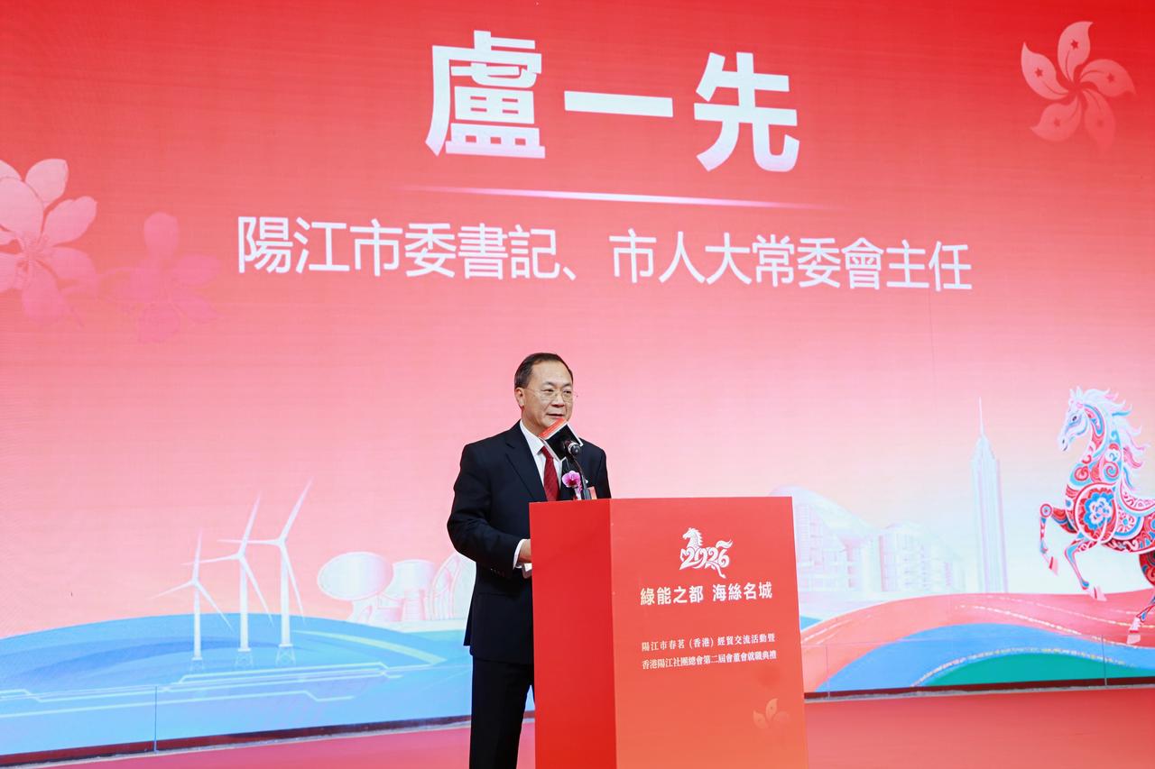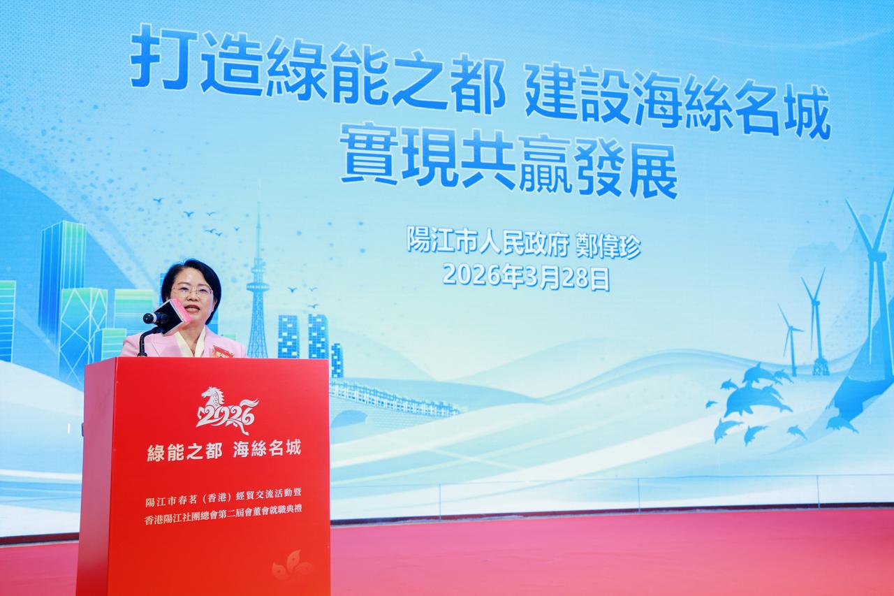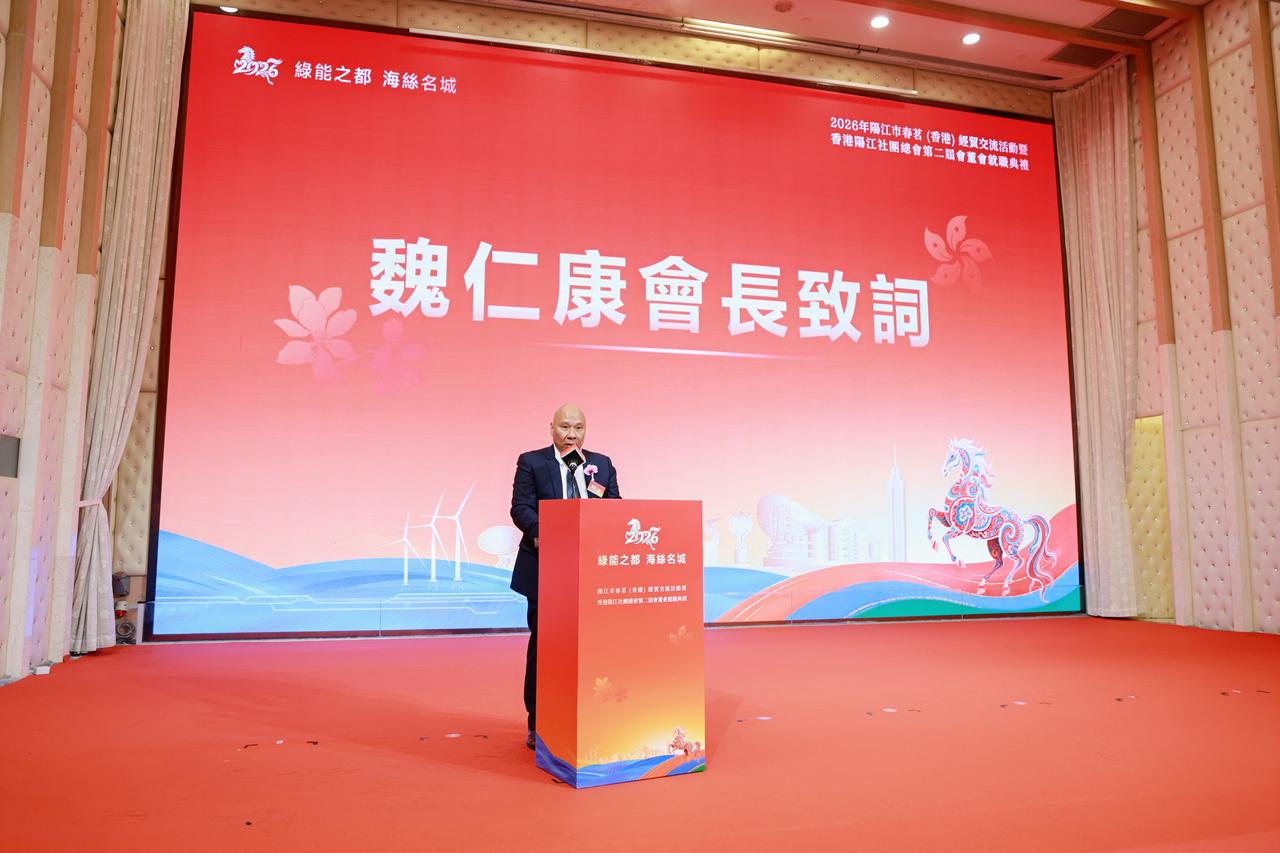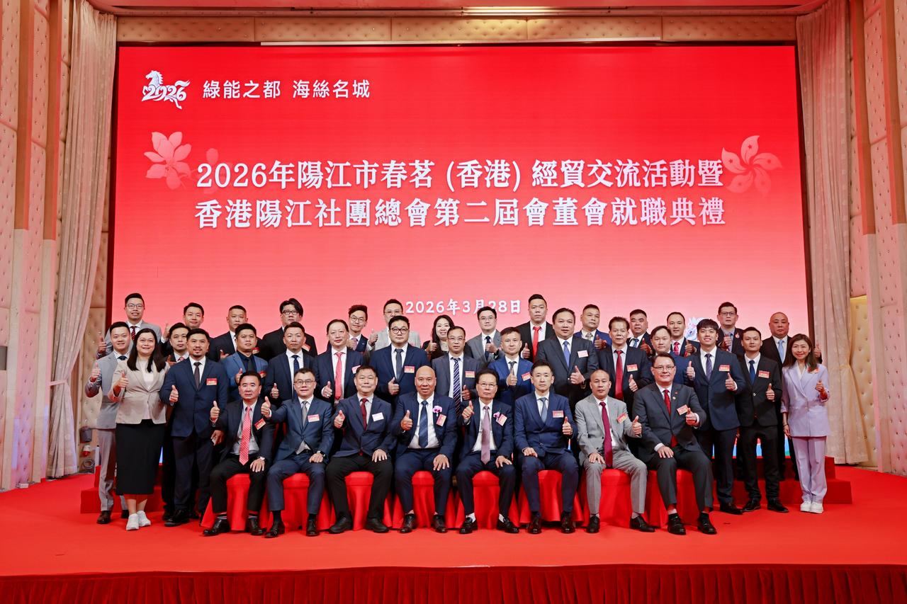 2026年阳江市春茗(香港)经贸交流会圆满举行 香港阳江社团总会第二届会董会正式就职 香港,2026年3月28日 —— 2026年阳江市春茗(香港)经贸交流会暨香港阳江社团总会第二届会董会就职典礼在港隆重举行。本次活动以「深化阳港合作、共谋高质量发展」为主题,汇聚两地政商界精英、社团领袖及企业代表,共叙乡情、共商合作、共谋发展,为阳江与香港的经贸往来与文旅融合注入新动力。 典礼在庄严的国歌声中拉开序幕。与会嘉宾共同观看阳江市宣传片,直观感受阳江在产业发展、文旅资源、营商环境等方面的崭新面貌。阳江市委书记、市人大常委会主任卢一先先生致辞时表示,阳江正全力推进产业升级与对外开放,期待以本次活动为桥樑,进一步加强与香港在先进製造、新能源、文旅康养等领域的深度合作,实现优势互补、互利共赢。 香港民政及青年事务局局长麦美娟女士SBS、JP恭贺香港阳江社团总会第二届会董会顺利就职,感谢总会长期以来团结在港乡亲、服务社区、积极推动阳港两地交流合作所作出的重要贡献,并寄语新一届架构继续凝聚乡贤力量,更好发挥桥樑纽带作用,为香港繁荣稳定及家乡高质量发展贡献更大力量。 香港贸发局华南首席代表黄天伟先生、香港立法会议员何敬康先生等嘉宾亦先后致辞,对阳江市近年来的发展成就给予高度评价,并表示将持续支持阳港两地开展多层次交流合作,助力香港企业把握大湾区发展机遇,拓展内地市场。 在企业发言环节,华润集团、金鹰企业管理等知名企业代表分享了在粤投资发展的经验与展望,表达了对阳江市场的浓厚兴趣。随后,阳江市副市长郑伟珍女士围绕阳江投资环境与文旅资源作专题推介,重点介绍了当地的产业政策、重点园区及特色文旅项目,诚邀香港企业家前来投资兴业。 典礼期间,阳江市文化广电旅游体育局与香港文旅协会、相关旅行社签署合作协议,标誌着两地在文旅资源开发、客源互送、品牌推广等方面迈入实质性合作阶段。 香港阳江社团总会主席冯权开先生作第一届会董会工作报告,总结过往在联繫乡亲、服务会员、推动两地交流等方面的成果。随后,大会为新一届会董会成员颁发证书,新当选会长魏仁康先生致辞时表示,将带领总会继续发挥桥樑纽带作用,团结凝聚在港阳江乡亲,坚定支持特区政府依法施政,并紧扣国家「十五五」规划蓝图,积极推动阳港经贸、文化、青年等领域的交流合作,为家乡发展与香港繁荣稳定贡献力量。 典礼现场还安排了「龙凤呈祥 狮龙共舞」「金猪献福」等富有岭南特色的文艺表演,气氛热烈祥和。在祝酒仪式后,与会嘉宾共进晚宴,在欢乐的歌舞声中进一步深化友谊、洽谈合作。 此次活动不仅是香港阳江社团总会薪火相传的重要里程碑,更为阳港两地搭建了高效的交流合作平台,将有力推动双方在经贸、文旅、民生等领域的深度融合,为大湾区建设注入新的活力。