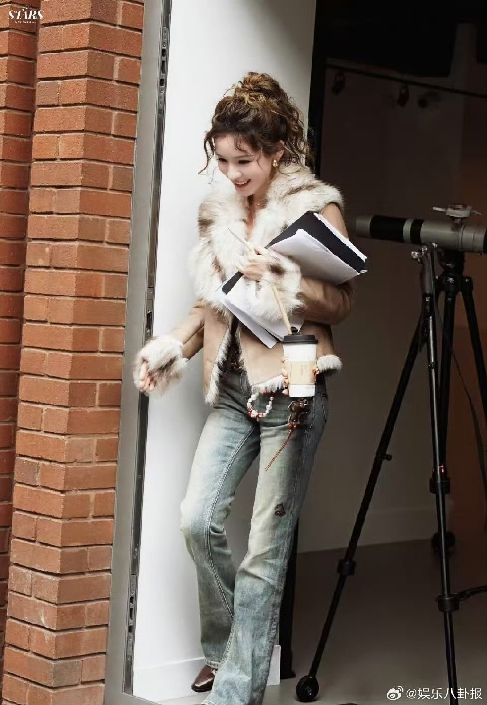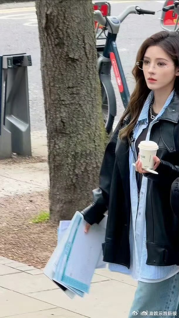 刘亦菲这条裤子挺养生,毕竟降温了肚脐眼必须护住啊