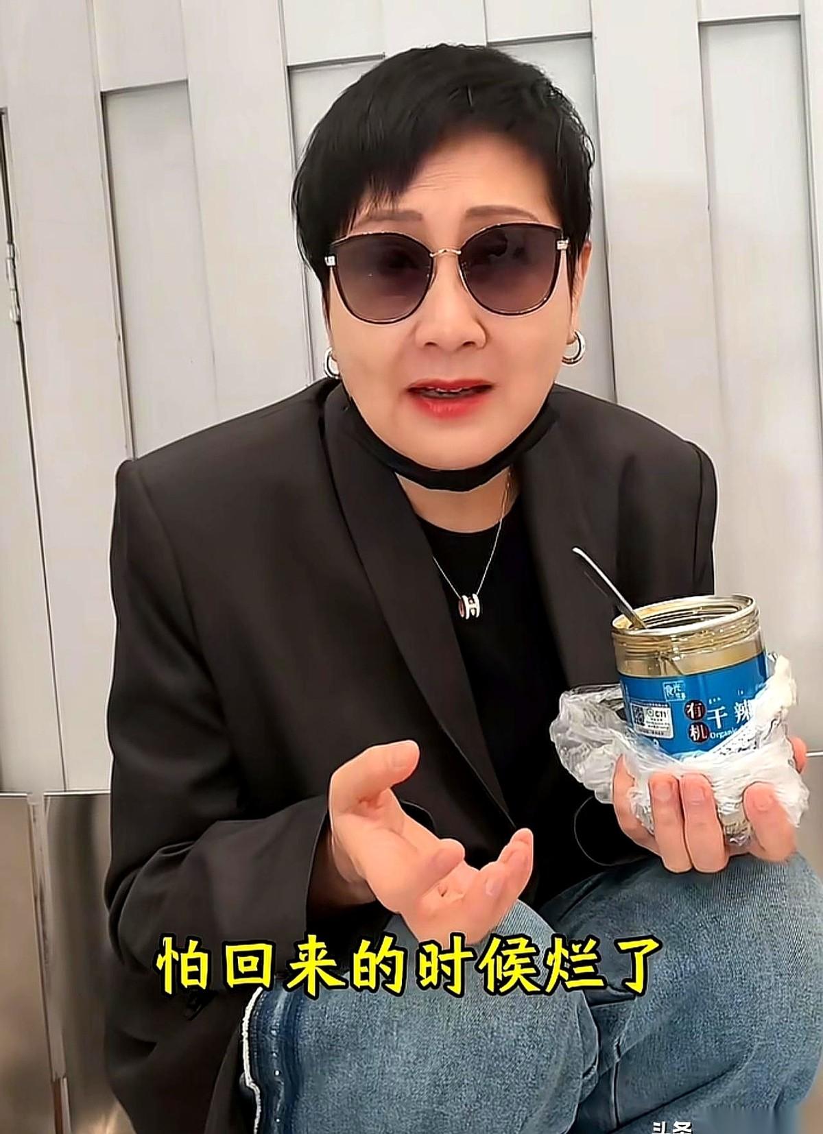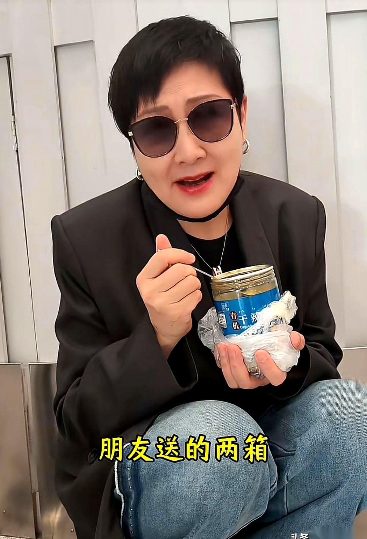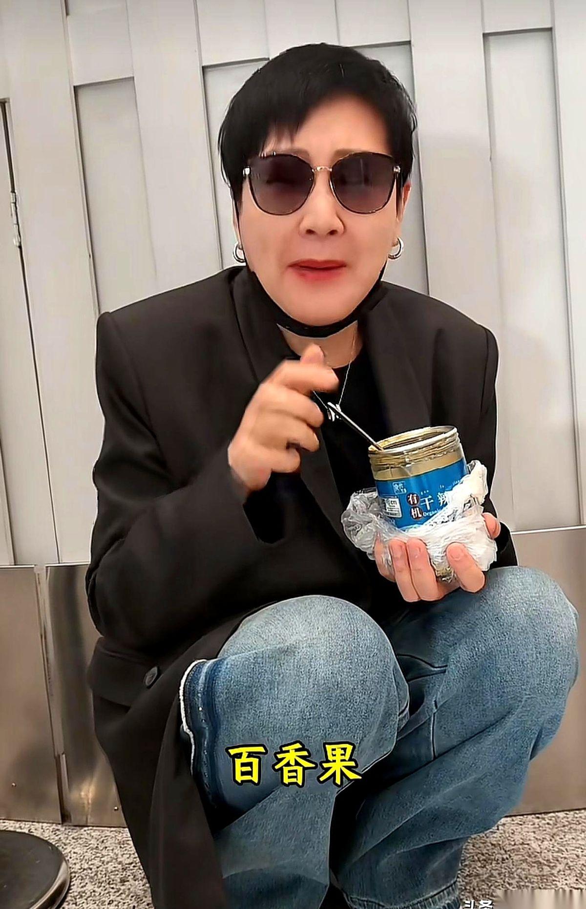 我跟你说,有些人“接地气”是人设,有些人是真的一屁股坐地上了。 就刚才刷到张凯丽,60多岁的人,在机场一个角落里蹲着,抱着个罐子一顿猛吃。 那表情,那眼神,一边吃还一边心虚地往四周瞟,生怕被人发现,整个一“作案现场”。 不知道的还以为干啥呢,原来是安检不让带,她舍不得扔那一罐子百香果。 我的妈呀,隔着屏幕我都感觉腮帮子是酸的。 但你知道最绝的是什么吗? 不是她蹲着吃东西有多好笑,也不是她舍不得浪费有多实在。 是她手里那个瓶子。 一个洗得干干净净的干辣椒瓶,被她拿来装百香果了。 这个细节,一下就给我干沉默了。 这不就是我妈,不就是你妈吗?全天下的妈是不是共享一个储物柜啊?什么好瓶子好罐子都得留着,早晚能派上用场。 真的,再贵的奢侈品,再完美的人设,都顶不过一个重复利用的辣椒瓶有说服力。 那一刻她不是什么明星,就是那个生怕你浪费一粒米、一个瓶子的“咱妈”。 这种真实,装不出来。