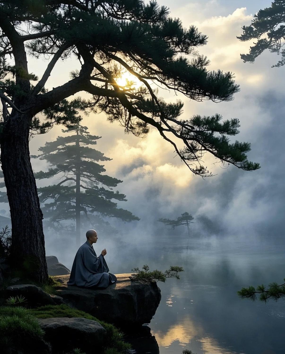 上联:花海藏诗意 下联:松涛养道心