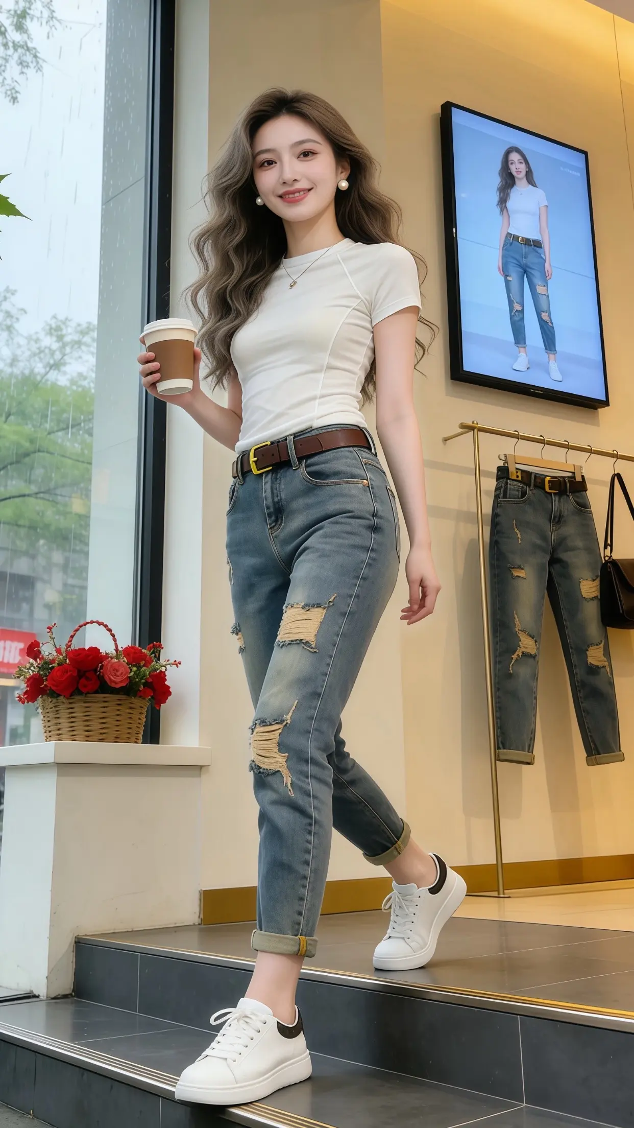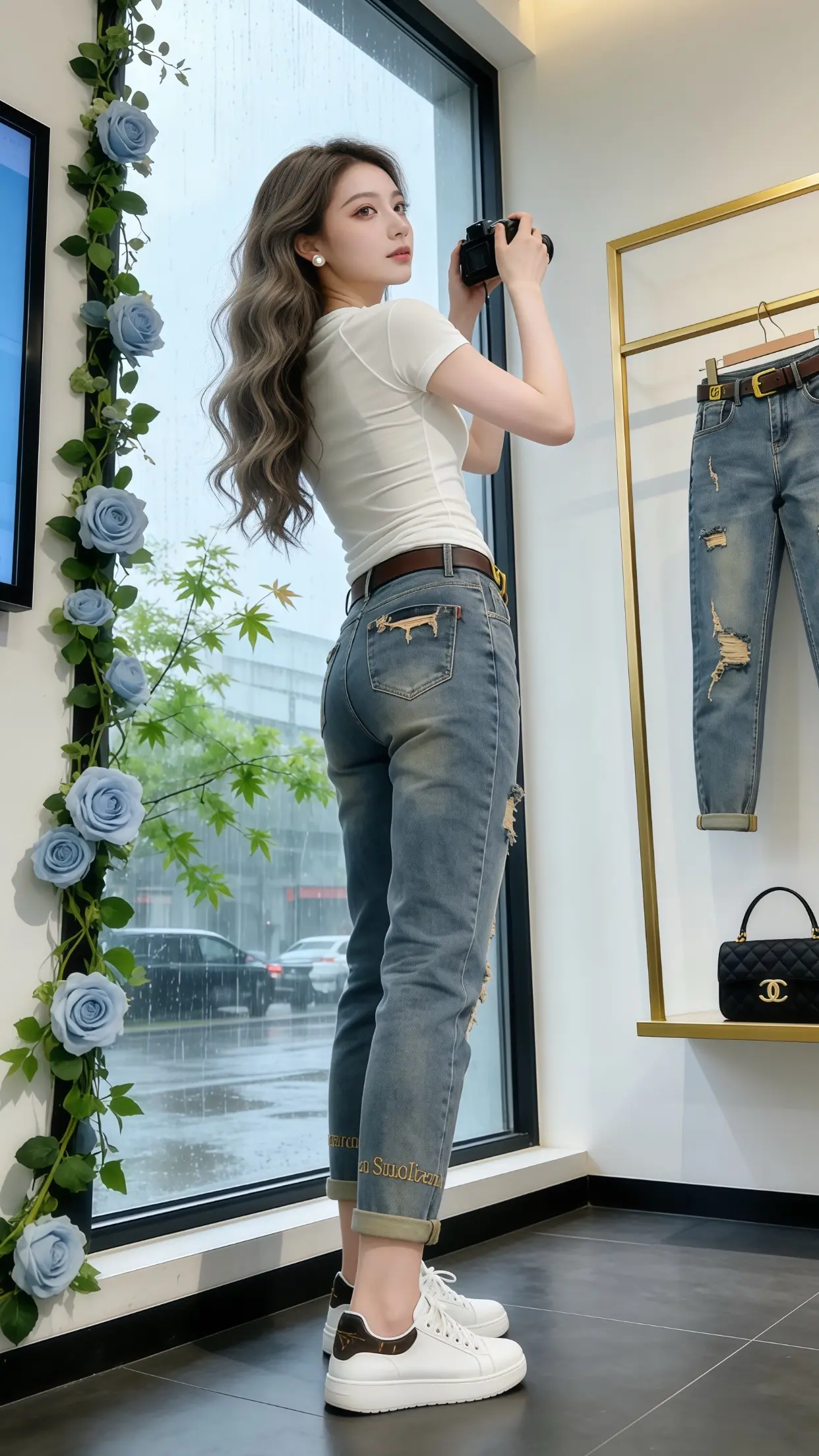 白色T恤+牛仔裤拍照姿势,9个出片小动作,上镜自然漂亮,青春气质显身材