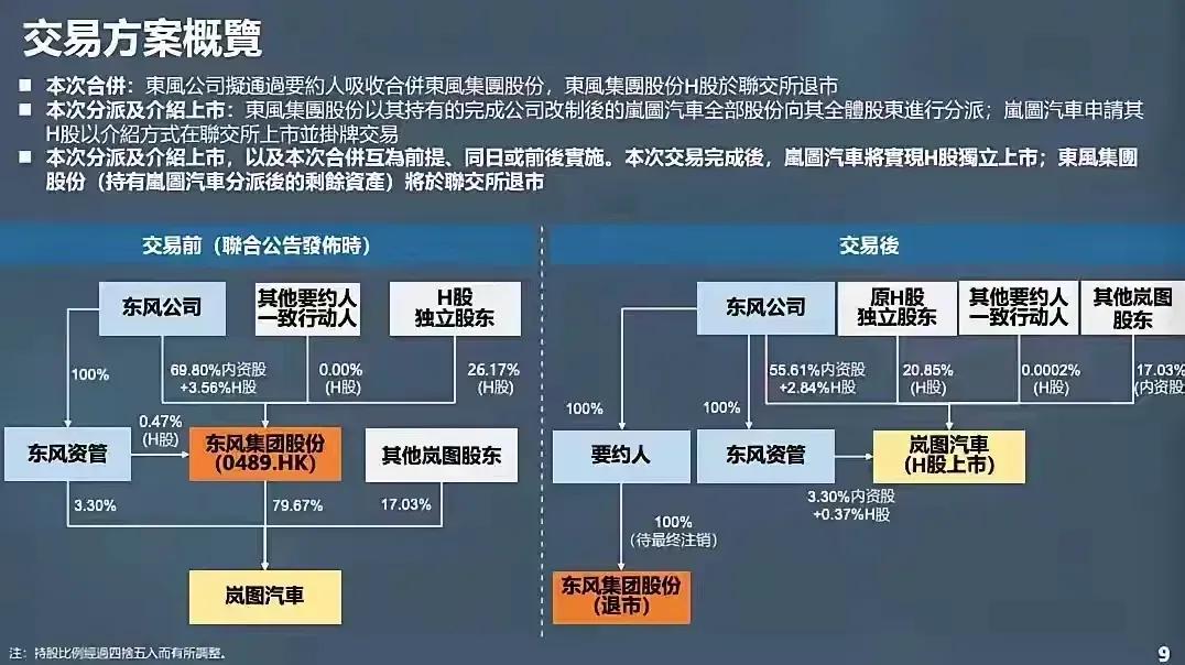 天眼查为何没有更新岚图持股主体信息? 东风总公司旗下东风投资,负责吸收合并已退市的原港股东风集团股份,全盘承接旗下所有股权与权益。目前工商、天眼查仍显示旧主体持股岚图,信息迟迟未更新。 延迟原因:一是合并法定需要45天债权人公示期,二是央企重组要经过国资委、多部委与境外监管多层联审,流程繁琐;再叠加同步推进岚图港股上市工作统筹协调,审批链路更长,加上企业征信平台本身数据同步滞后,造成公示信息落后实际权属。 时间周期上,整体走完合规+工商全套流程约6—12个月,预计2026年下半年才能完成全网工商资料彻底刷新。 核心事实:法律层面早已敲定,东风总公司通过东风投资完全掌控岚图,东风投资仅为合并过渡壳平台,不实际经营业务;同时岚图已完成港股介绍上市落地,从头到尾控制权始终牢牢掌握在东风央企总部手中,只是工商纸面信息还没更正而已。 东风自主品牌分布——