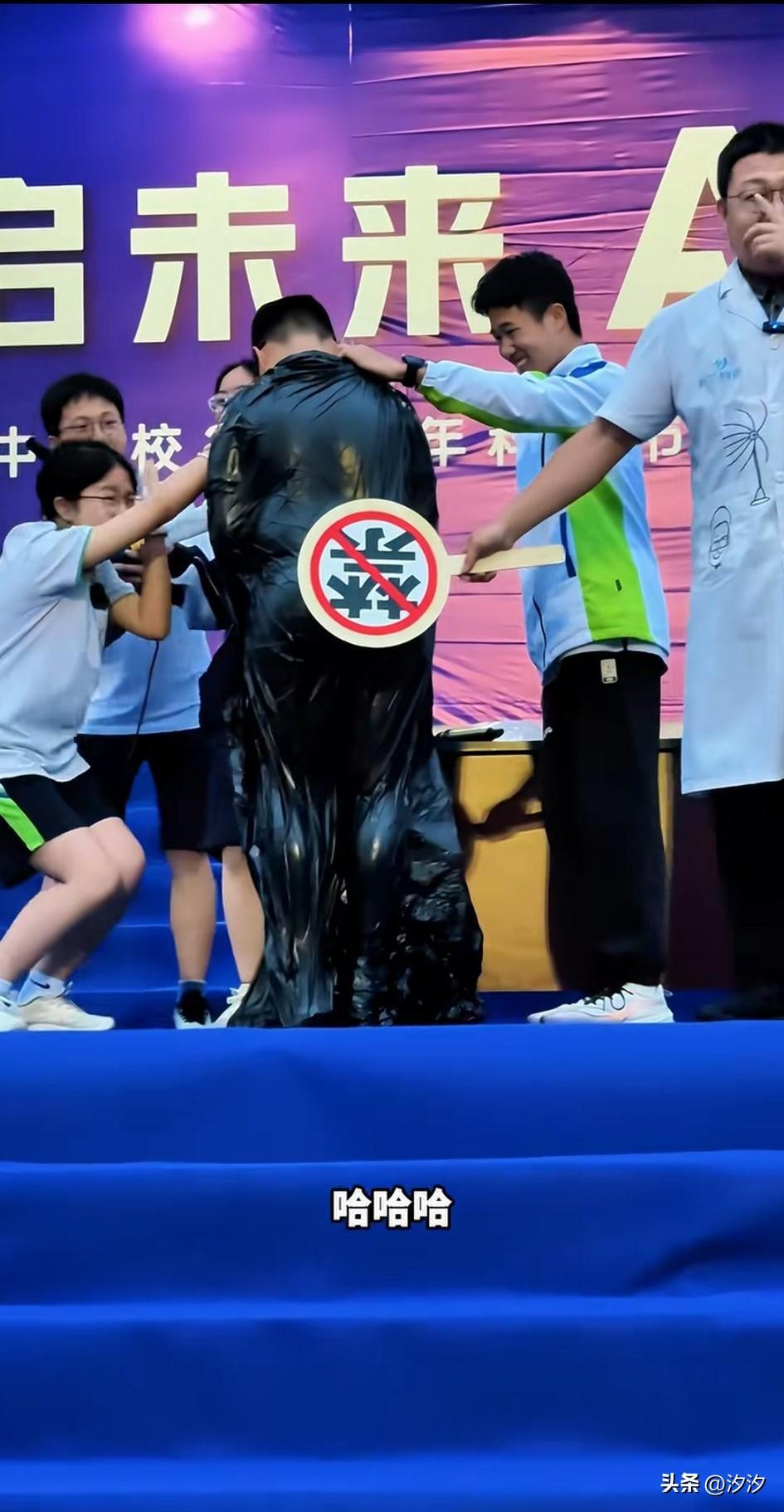 这样的科技课堂谁不喜欢? 科技总能给学生带来兴趣吧, 这个学校举办科技大赛, 老师现场给学生演示真空环境, 他让一个同学跳进了一个塑料袋, 周围有很多同学扶着他, 随后又拿了一根管子, 接到了一个吹风机身上, 然后将管子插到抽风处, 旁边的女同学也很感兴趣, 操场上的同学直直盯着这一幕, 大家都想知道抽光空气之后是什么感觉,参与实验的小胖也很开心, 当按键被打开的那一刻, 小胖周边的塑料袋迅速收集, 可以说成了贴身衣物, 老师拿着一个禁止的牌子, 挡住了小胖的关键部位, 这可把现场的同学笑弯了腰, 旁边的女同学更是夸张, 直接仰天大笑三次, 大家这回体验到了科技的魅力, 只有给学生带来乐趣, 还会有更多的人喜欢科学实验, 这叫做培养科学兴趣, 这样上科学课才有意思, 大家觉得呢? 中小学科技活动 中小学科技 教育科技活动课 课堂趣味实验 创意科技活动 中小学科技竞赛