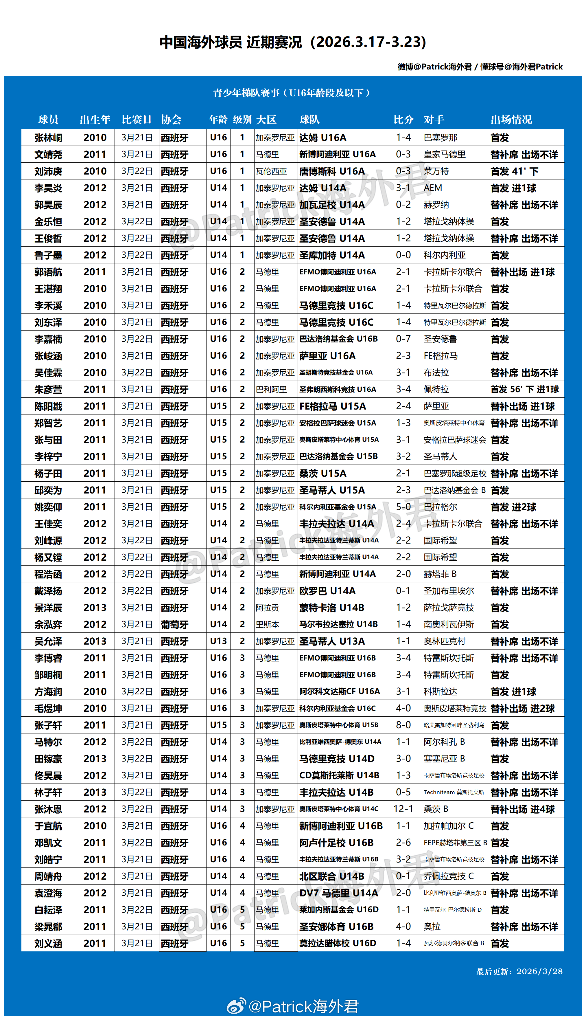 西班牙男足联赛体系概览(2025/26赛季)网页链接 2025/26赛季中国海外球员数据一览(成年)网页链接 2025/26赛季中国海外球员数据一览(青少年)网页链接