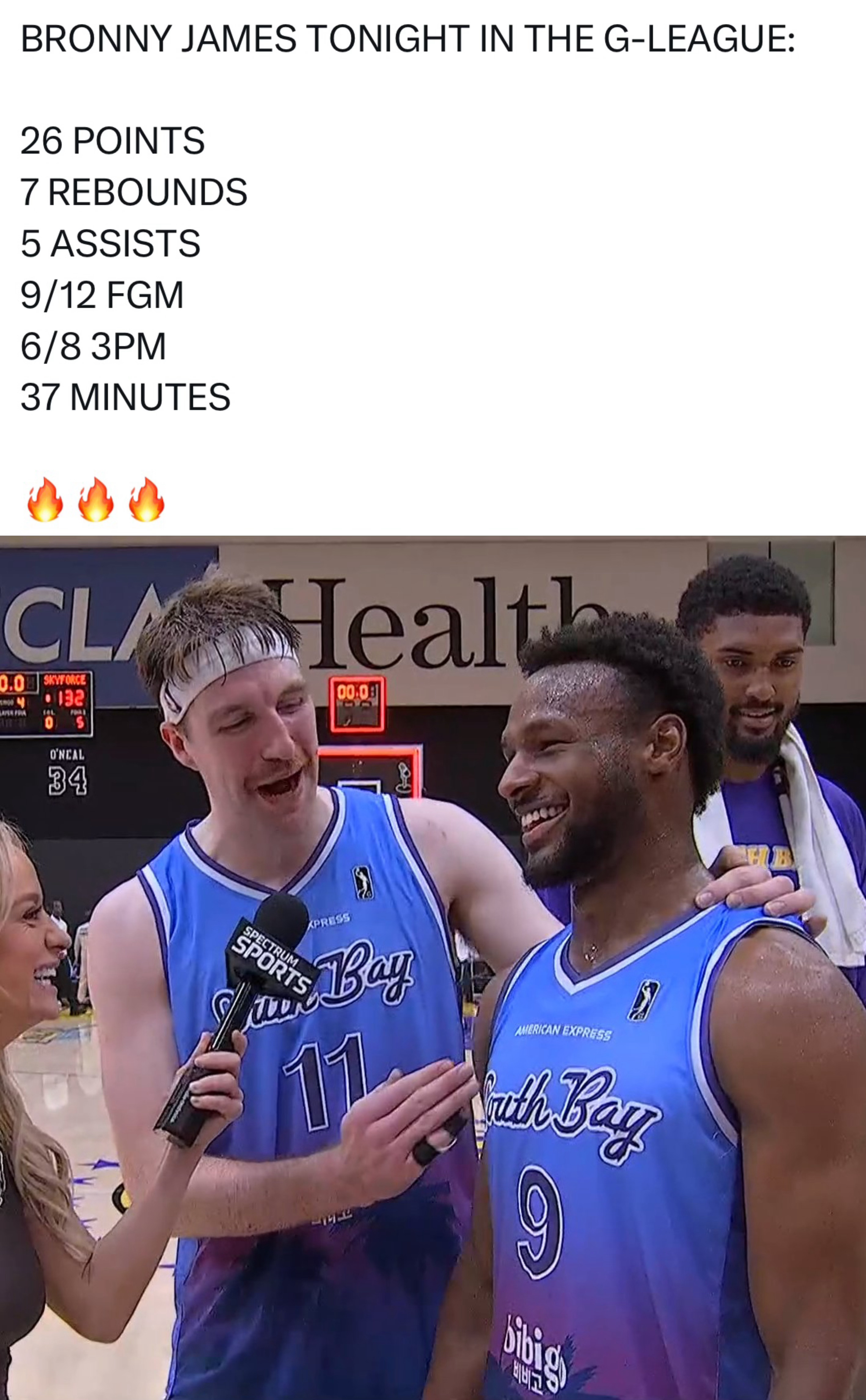 布朗尼越打越猛,詹姆斯发推:布朗尼现在彻底打疯了!!!我的天。布朗尼今日出战37分钟,12投9中,三分8中6,得到26分7板5助攻。南湾湖人140-132击败苏瀑。
