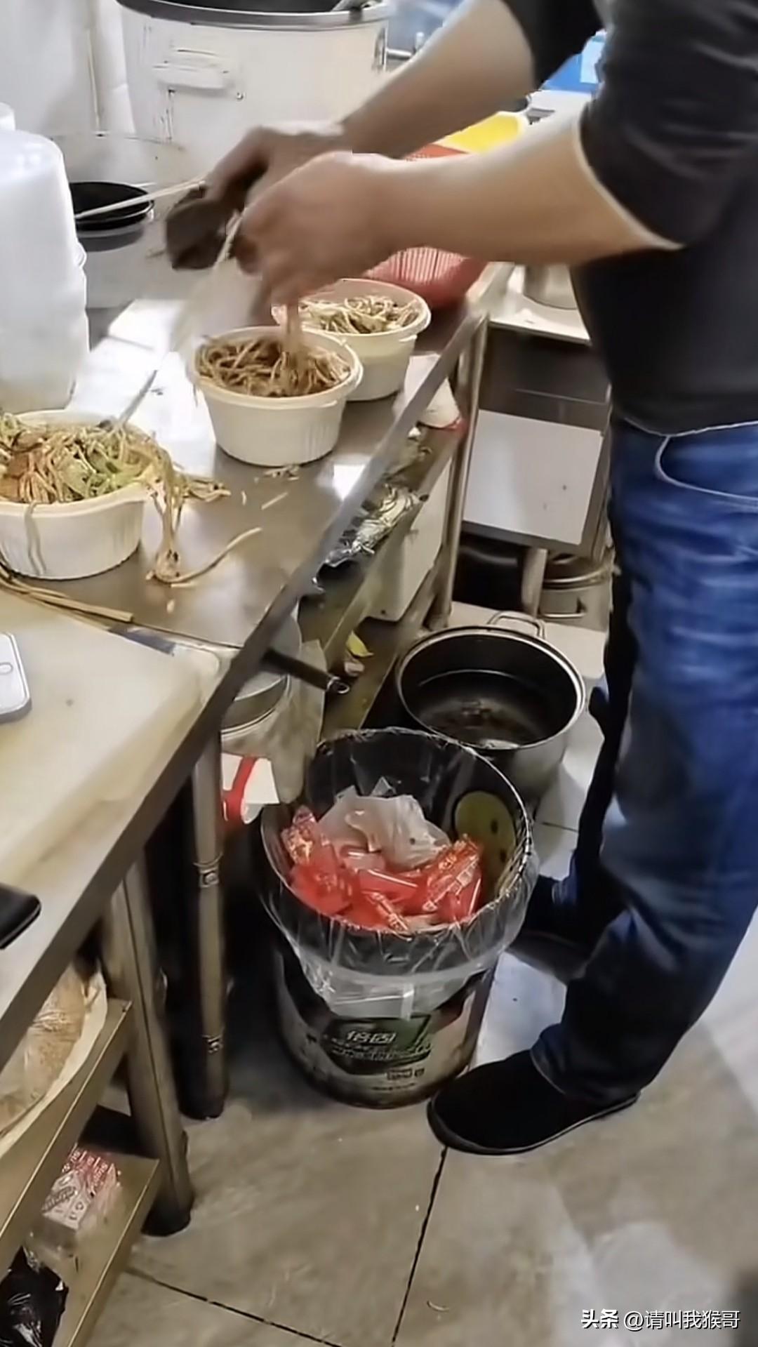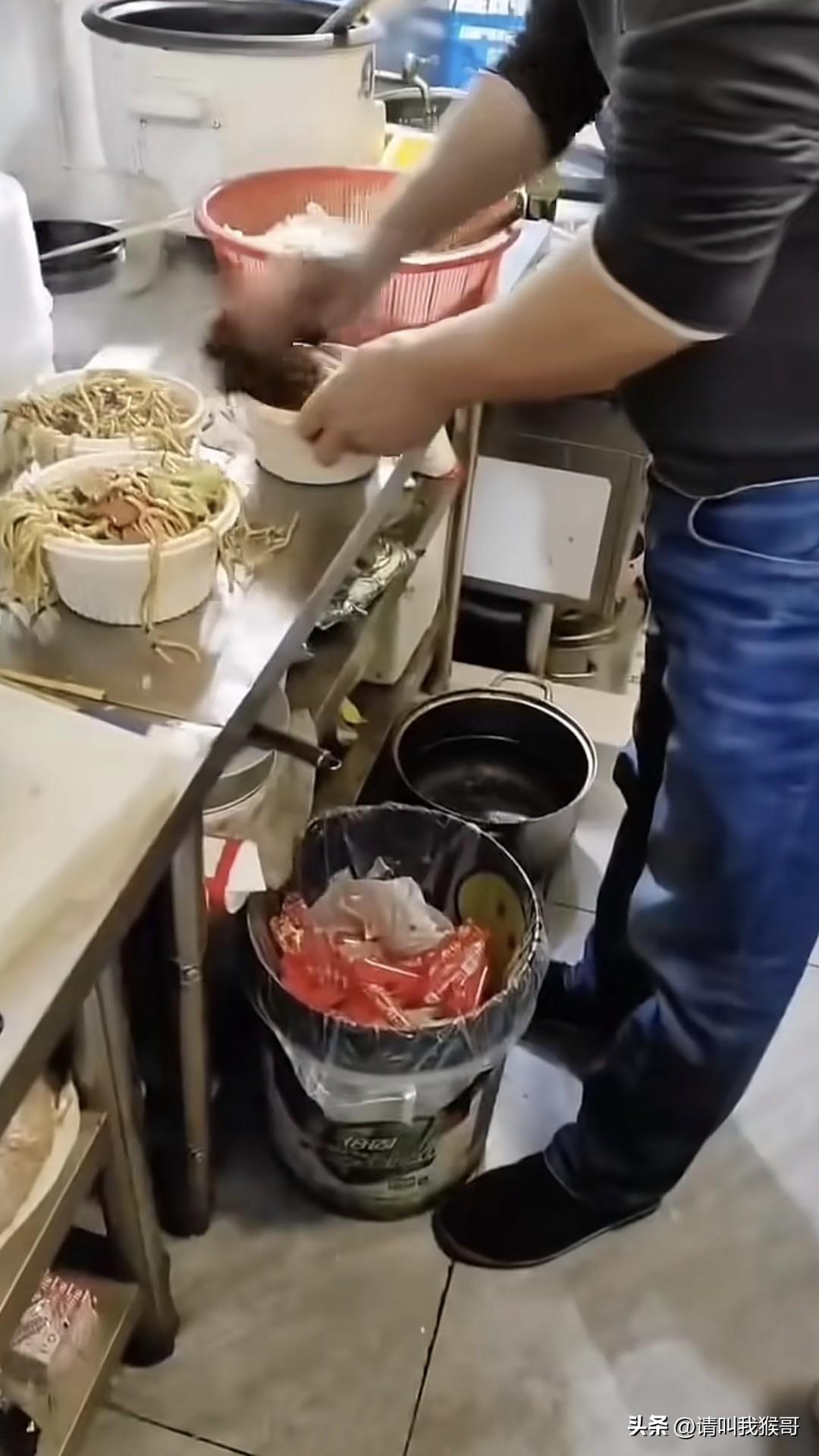 这餐馆老板也真是牛,有人拍照也不怕。就这样明目张胆的用厨房抹布把掉在案板上的面条擦进碗里,也不知道最后吃到哪个倒霉蛋肚子里。