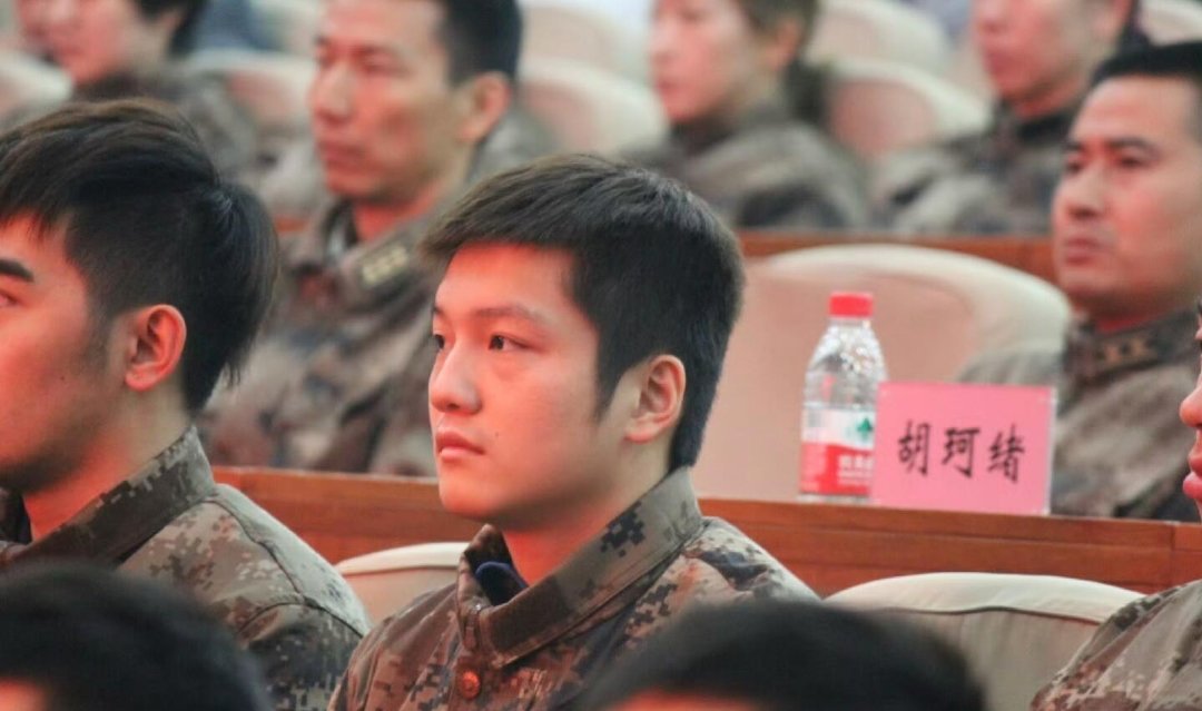 青春、迷彩、樊振东。 迷彩裹雄姿,军魂铸骨肌。 目光凝锐志,步履踏雄威。 赛场风雷动,初心日月辉。 一身家国梦,百战不言归。