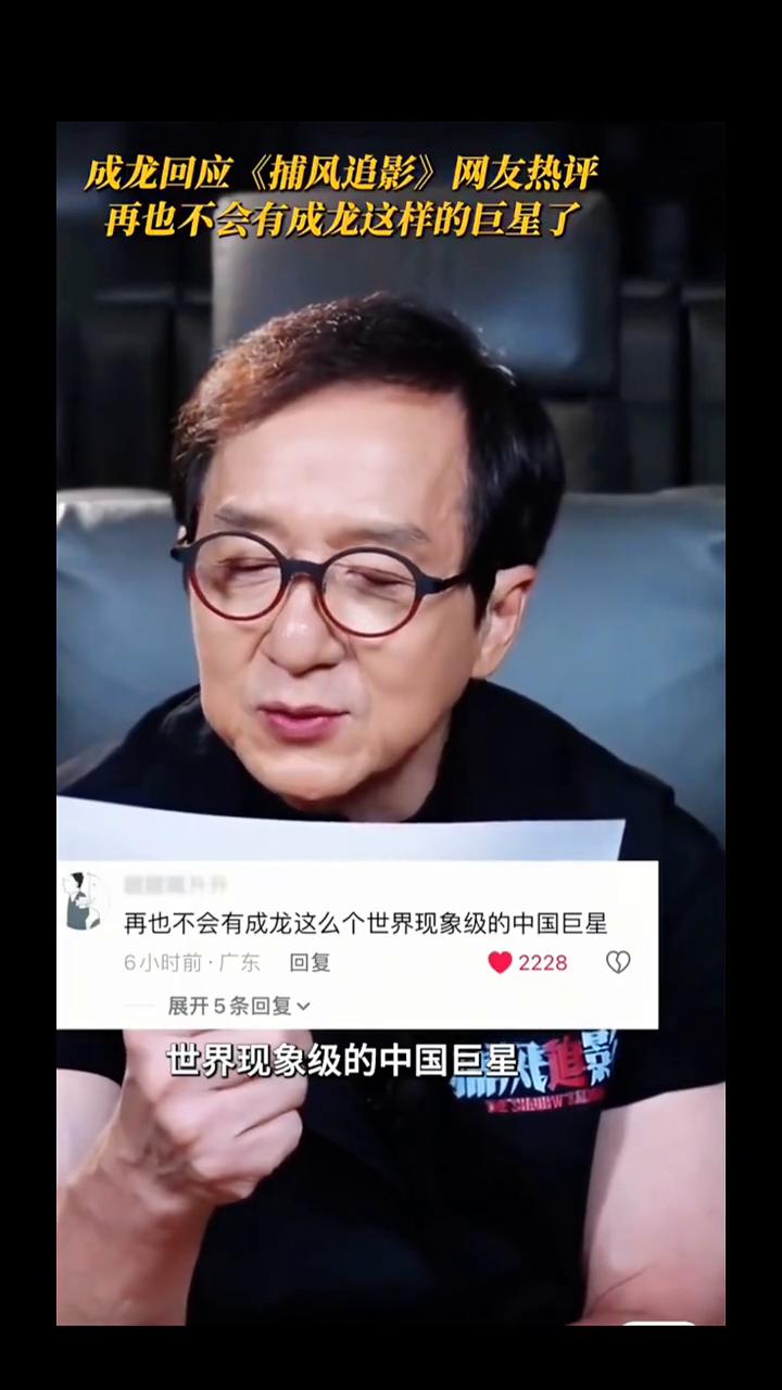 成龙回应《捕风追影》网友热评:再也不会有成龙这样的巨星了。 再也不会有成龙这么个世界现象级的中国巨星。我希望会有,我也相信一定会有。好像以前人家说不会再有李小龙,现在又出了一个成龙,我相信以后还会出一个某龙。一定会有,中国这么大,人才那么多。请相信中国动作片的未来。