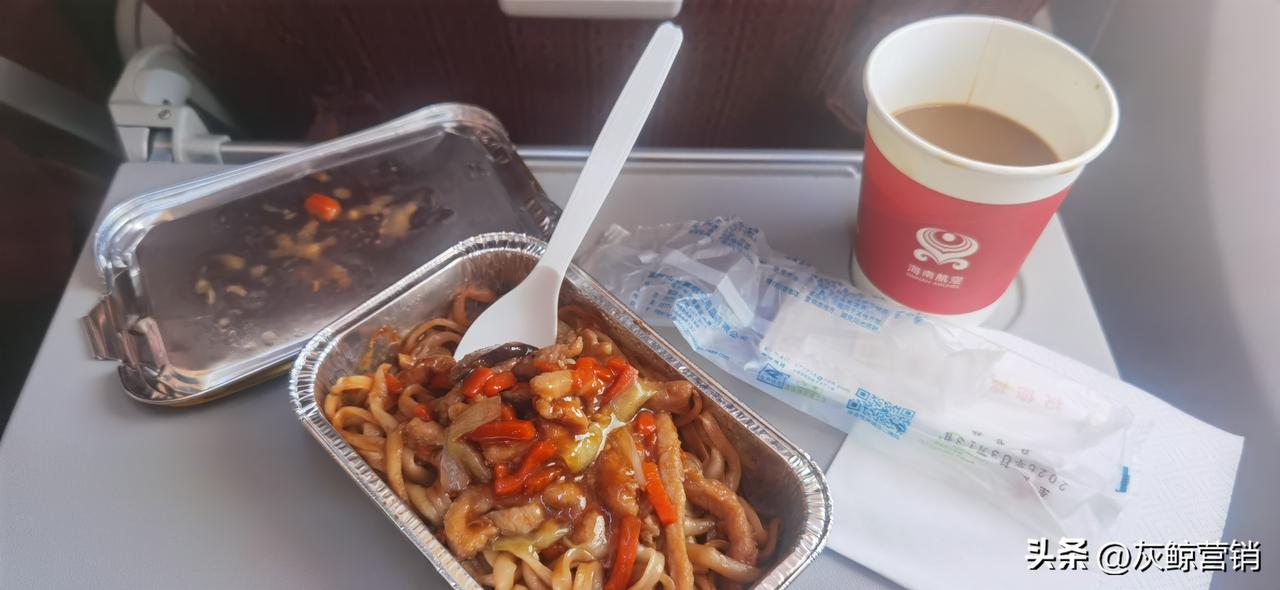 飞机上的早餐如果饿了,也是美味。 如果不饿,那可以不吃。 早上7点,就当早餐吃了, 这份炒面就是有点咸啊。 还好有杯咖啡缓解了。