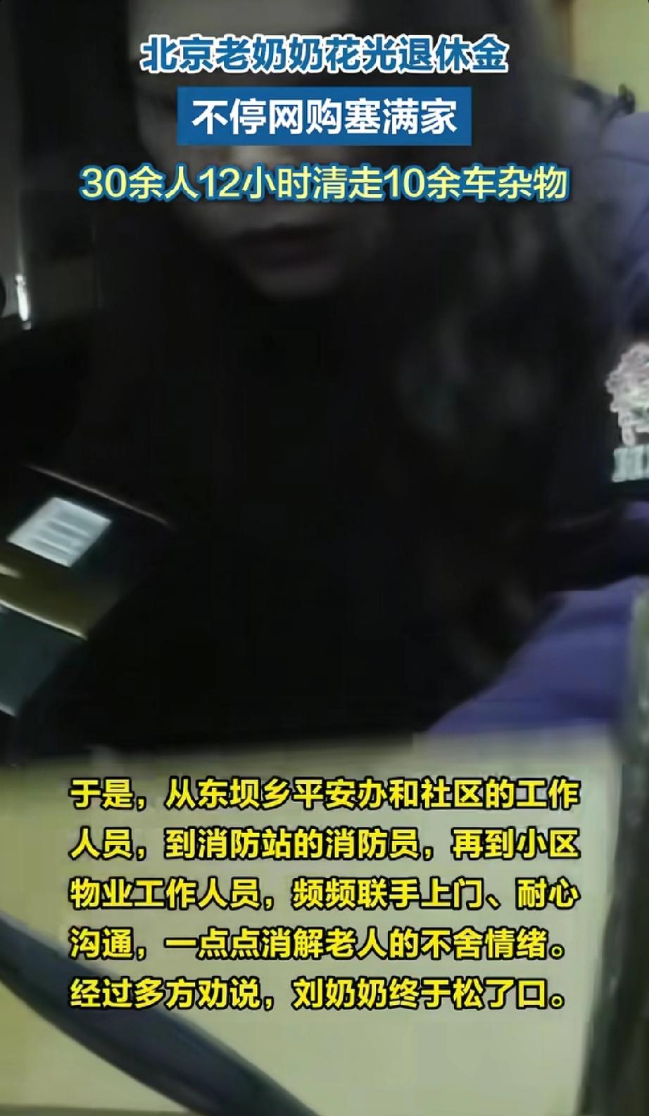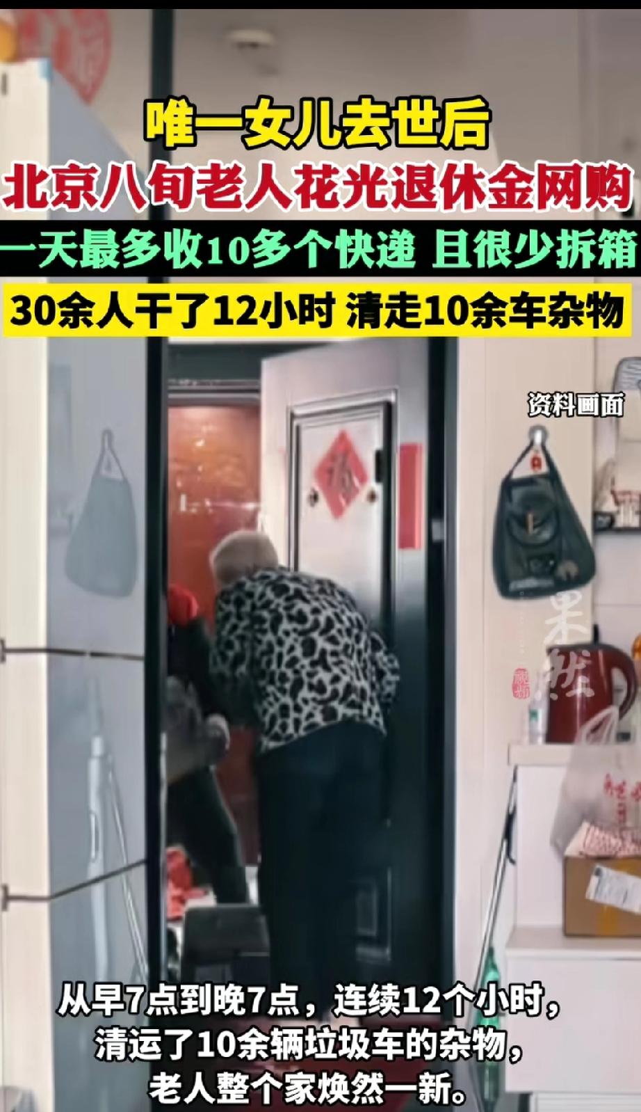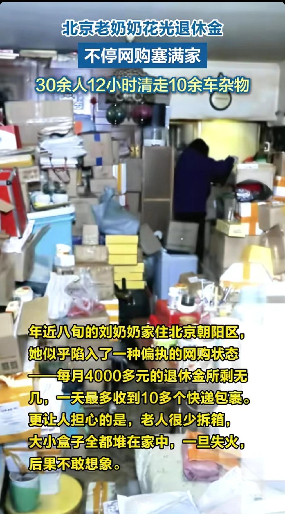 老人网购清理后续。 年近八旬的刘奶奶,女儿去世后陷入偏执网购,每月 4000 多元退休金花光,家里快递和过期保健品堆积如山,存在严重消防隐患。社区工作人员分析,这可能是老人失去女儿后慰藉心灵的方式。 近期,结合“降险除患”2026 春季整治行动,朝阳区消防救援支队联动多方救助。看到刘奶奶态度软化,大家承诺认真对待每个物件,一件一件拆包裹。这后续清理不仅是收拾物品,更是帮老人打开心墙,重新拥抱正常生活,希望老人能慢慢走出阴霾。 网购质量真相 网购退件 网购三无产品 淘宝垃圾售后 网购老太