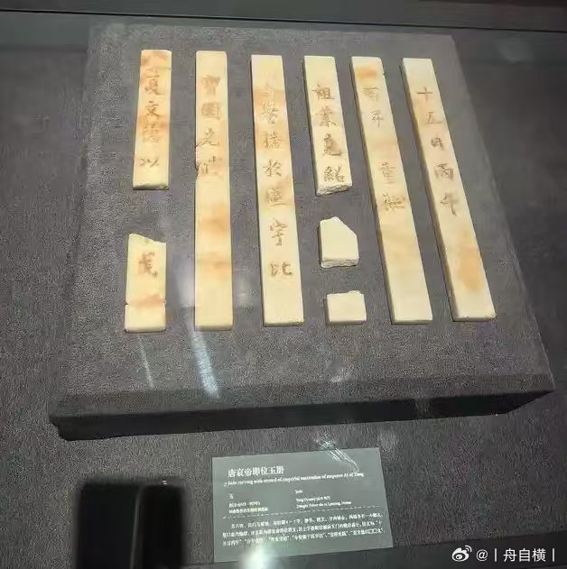 这份玉册记录了哀帝即位过程及晚唐政权更迭背景,内容为立嗣诏书,歌颂大唐历代帝王功绩,赞扬唐哀帝优良品格,庄重宣布他继任皇位。作为唐代皇权仪制的实物遗存,它反映了唐末政治动荡与皇权交接仪式的具体形态,见证了唐朝最后一次君主交替,也为这一王朝的国祚画上了句号。目前该玉册在中国考古博物馆展出。考古知识历史文物古墓唐朝历史文化历史人物