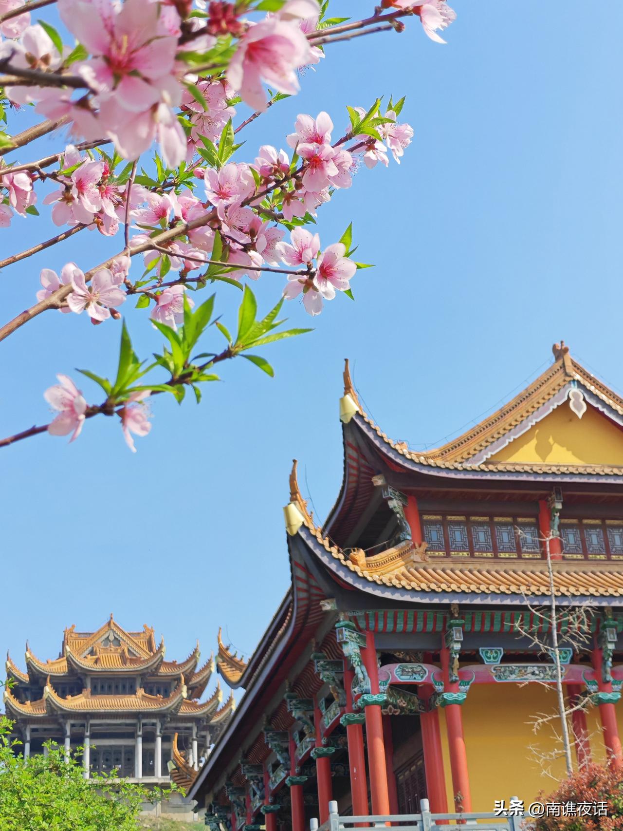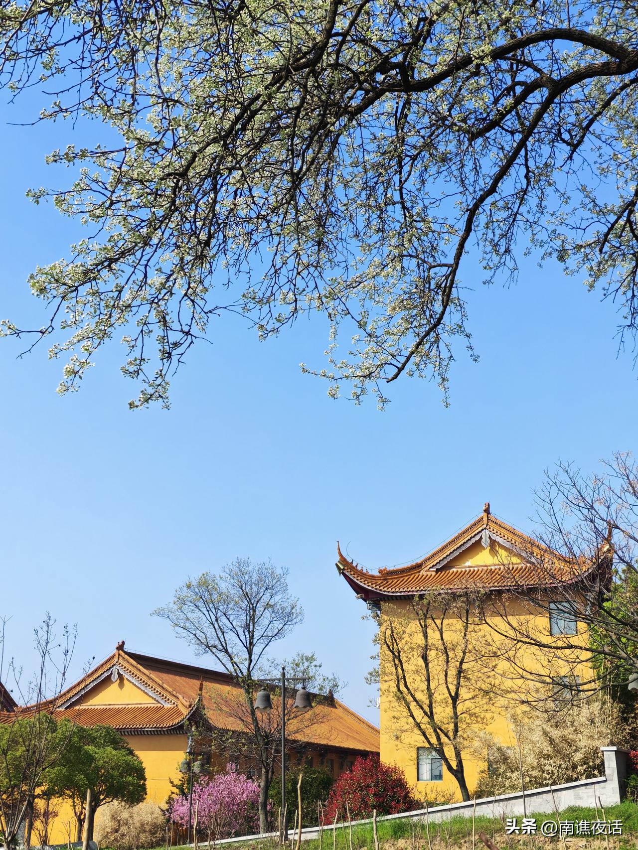蚌埠栖岩寺的四季有不同的风景,春天里的栖岩寺,鲜花与古寺互为映衬,庄严与灵动交织,黄墙金顶与各色鲜花装点,找好角度,拍出不一样的四季栖岩古寺。