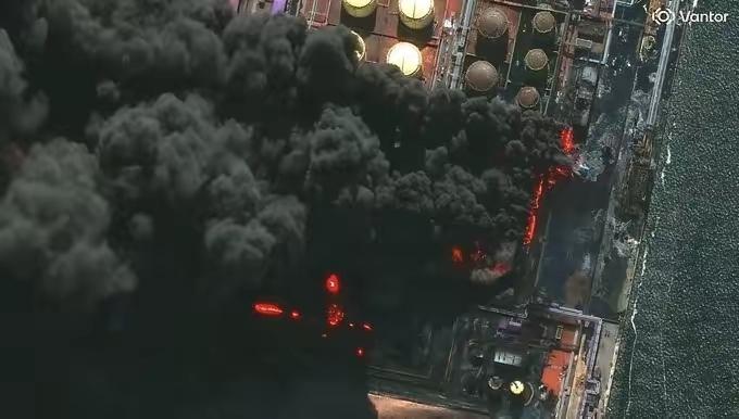3月29日,据社交网站报道,昨天,俄罗斯乌斯季卢加港石油设施遭到无人机袭击,浓烟滚滚。