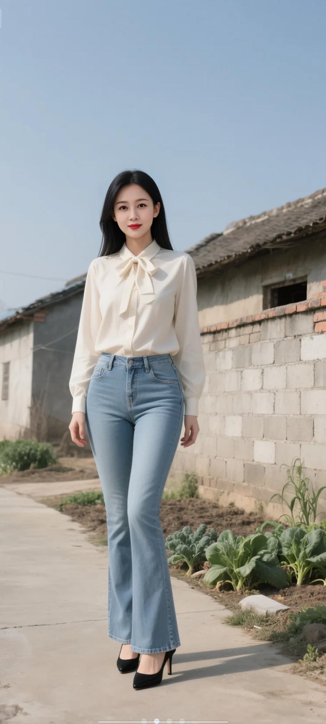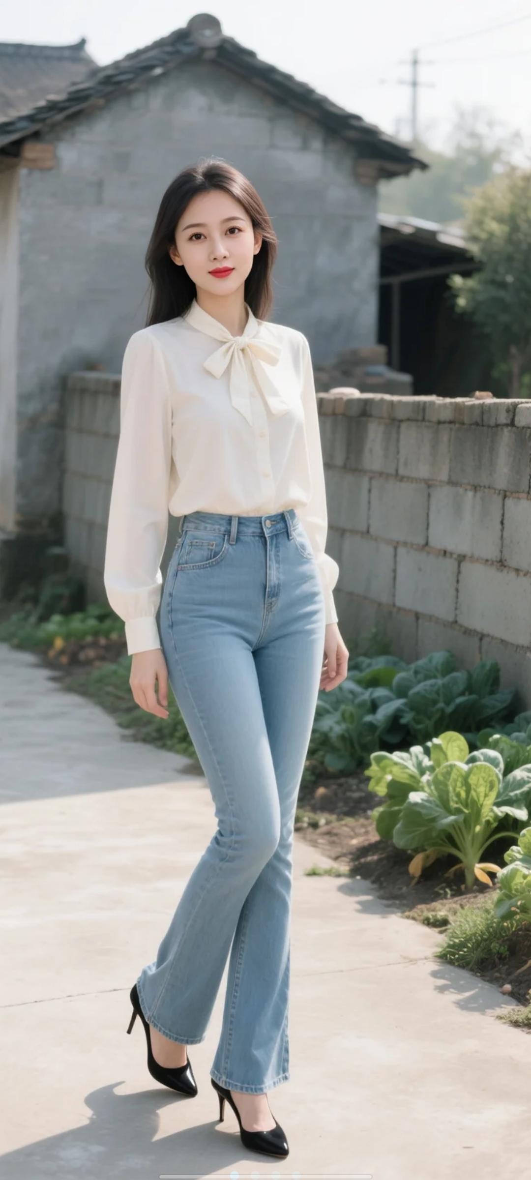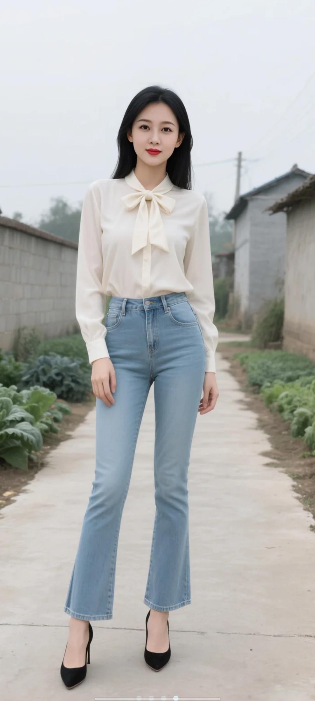 她站在镜前,手机举得刚刚好,镜头里是她精心搭配的造型——深灰水洗牛仔外套敞着穿,