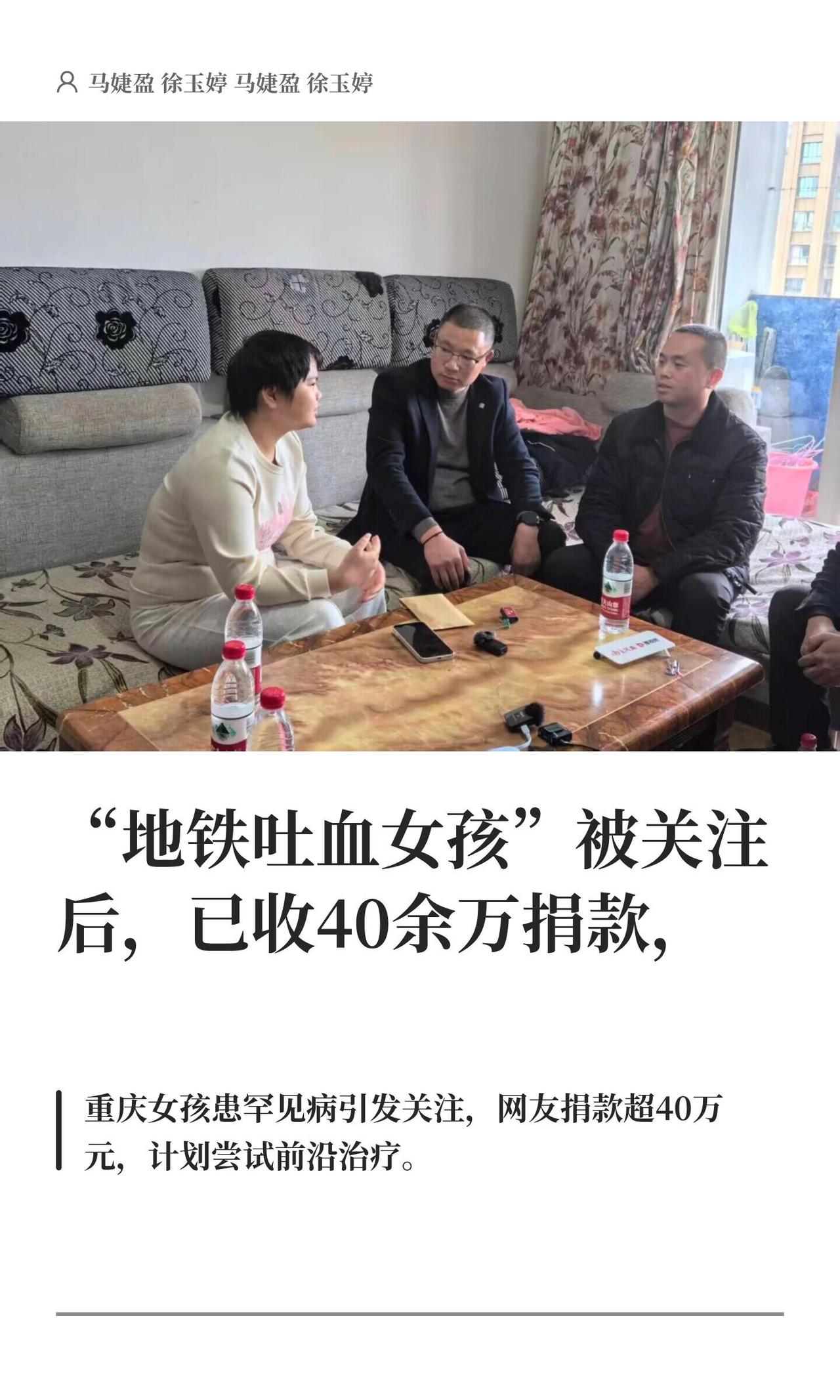3月25号下午,在胡心瑶住的小区门口见到了她。她身上那件红毛衣还是春节时候买的,袖口都起球了,下身穿条白棉裤,脚上一双粉色棉拖。因为长期吃药,整个人看着有点浮肿。 跟她待了四个钟头,她基本没停过——不是在回消息,就是在接电话。有谢谢给她捐款的好心人,也有应付各种媒体、自媒体的采访邀约。但她的身体明显撑不住这么折腾,走路得撑着腰,走几步就喘,累了就蹲在花坛边歇会儿。 她突然被这么多人知道,是因为前两天网上疯传的一段视频:重庆地铁1号线上,一个女孩吐了血,然后自己默默拿外套把地上的血擦干净。后来有人认出来,这女孩就是胡心瑶,得了ANCA相关性血管炎。她在采访里说,擦掉是怕别人不小心踩到。就这个举动,让好多人心里一颤。 其实直到记者找上门,胡心瑶自己都不知道被拍了。那天她正坐地铁要去医院打针,吐血这情况从去年12月就开始了,是这病引起的消化道出血。因为没钱,她已经三个月没治疗了。 3月24号上午,她去了华西医院,下午就出院了。被关注之后,陆陆续续收到一些捐款,到26号差不多有40多万。她打算先把并发症稳住,之后试试一种叫car-T的新疗法,听说能抗癌细胞。 网络上为什么有那么多的蠢人?