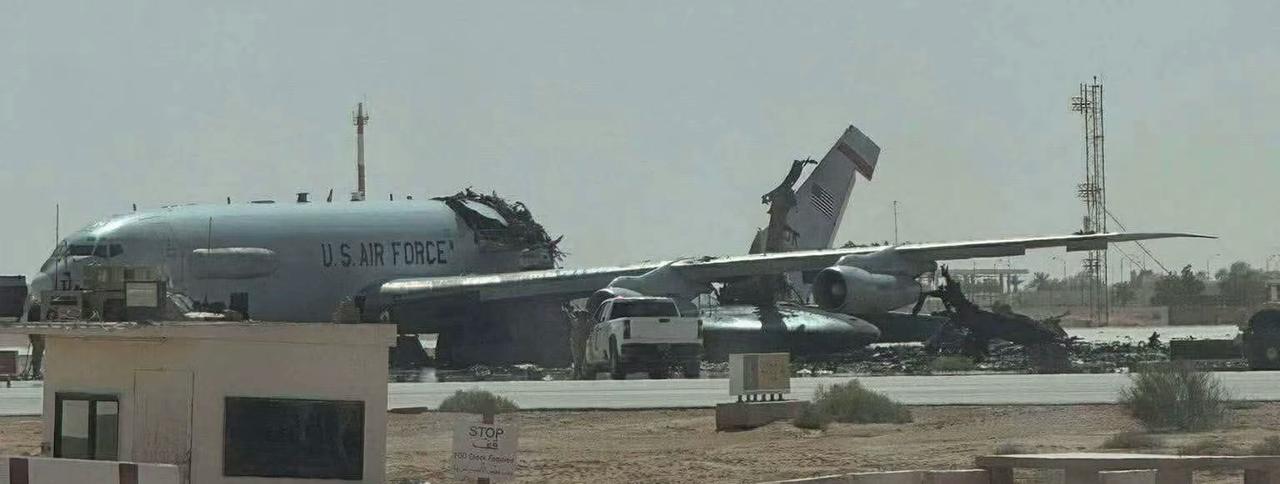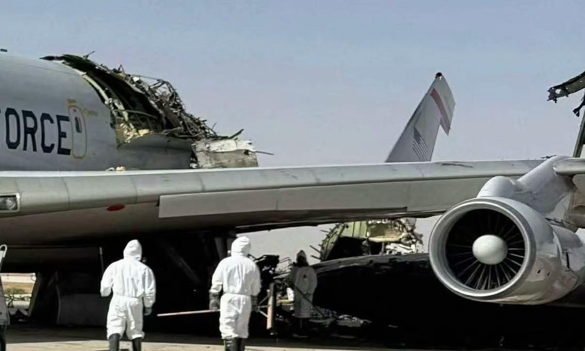 据称是美军在沙特首都利雅得苏丹王子机场,E3预警机、KC加油机等遇袭后的残骸。