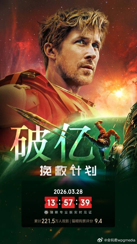 《挽救计划》国内票房过亿据猫眼专业版数据,电影《挽救计划》 上映9天, 总票房破1亿。《挽救计划》是由菲尔·罗德、克里斯托弗·米勒执导,德鲁·高达、安迪·威尔编剧,瑞恩·高斯林、桑德拉·惠勒、詹姆斯·奥尔蒂斯、米拉娜·薇恩翠、梁振邦等主演的太空科幻惊悚片。该片于2026年3月18日在中国台湾上映,同年3月20日在北美与中国内地同步上映。该片改编自安迪·威尔的同名小说,讲述了曾担任中学科学课老师的宇航员从昏迷中醒来,发现独自身处宇宙飞船中,已经不记得自己是谁,在这里干什么。而随着记忆爆发式的回归,他想起是被送往离地球12光年的天仓五,去拯救地球——因为一起太空事件,地球已进入冰川时代早期。任务的细节逐渐揭露,他必须依赖自身的科技知识和聪明才智。不过,他可能并不是独自一“人”。