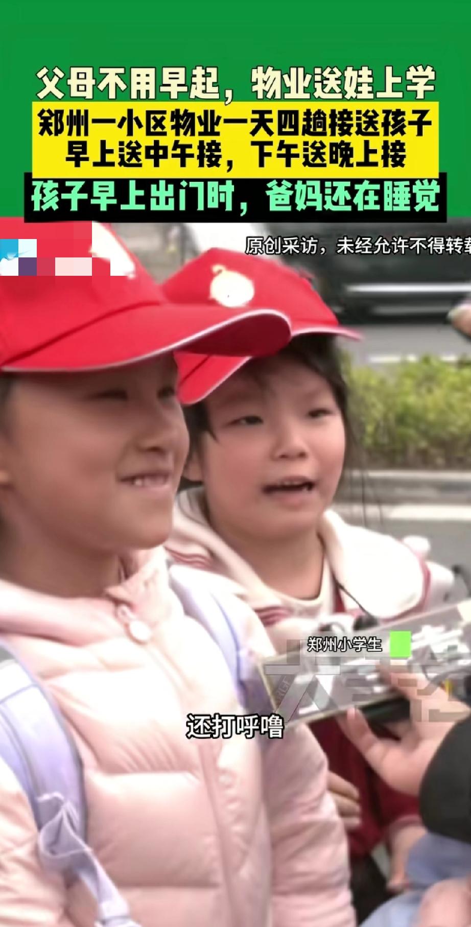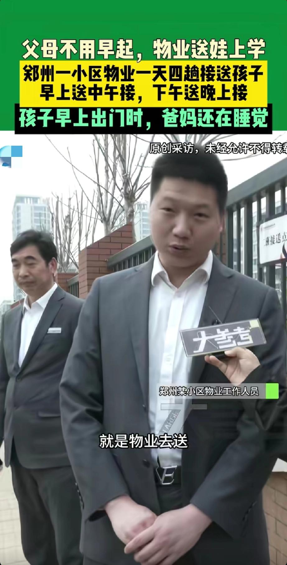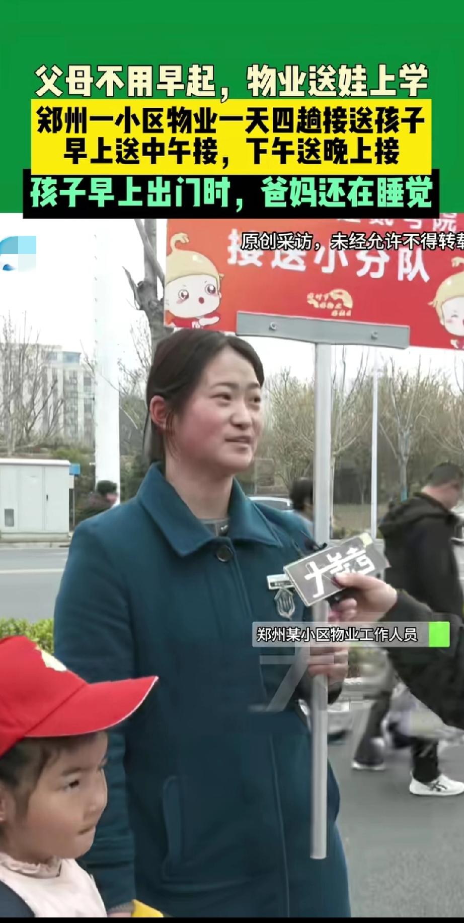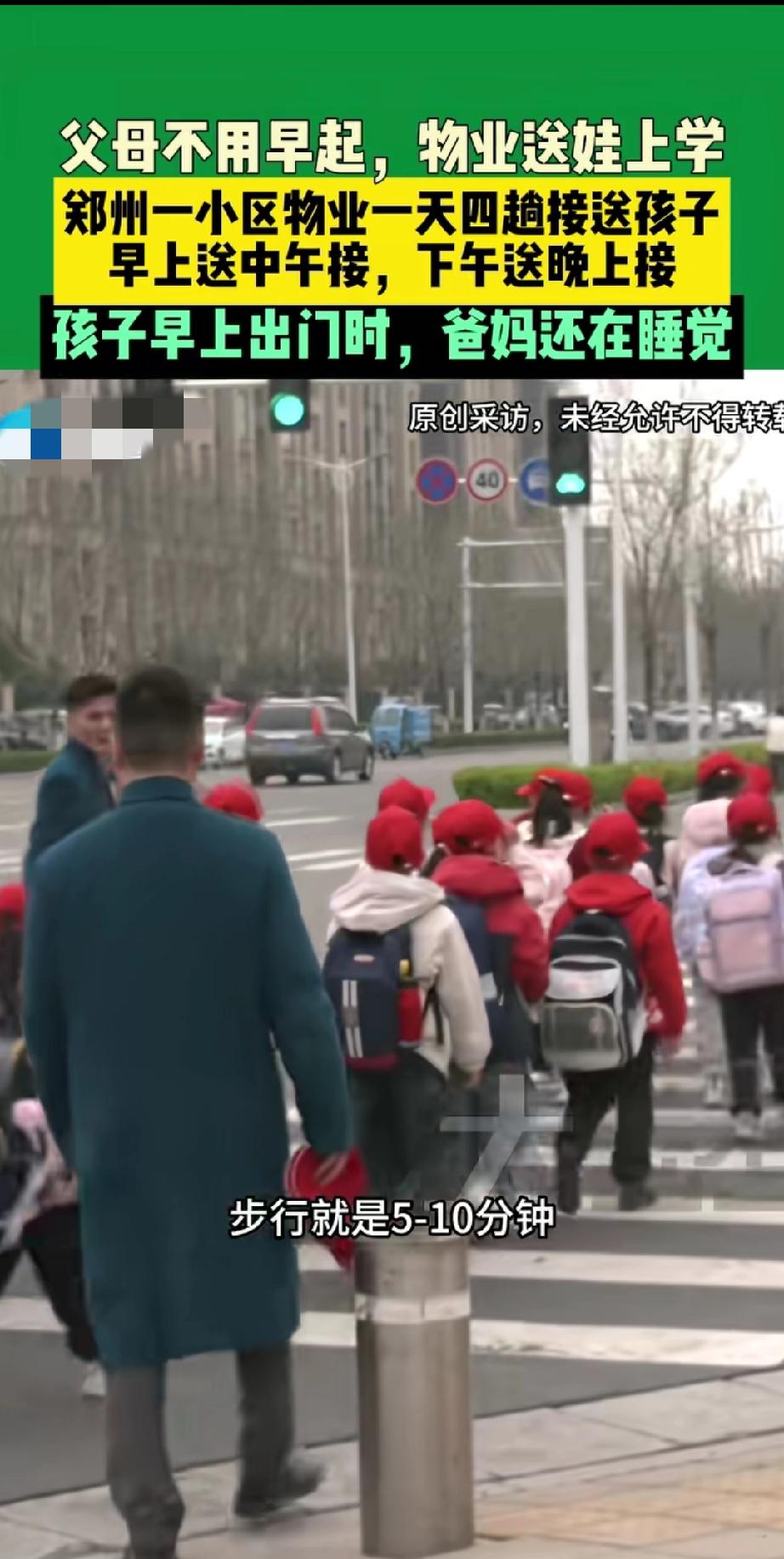河南神仙物业太会疼人,接小孩上学,放学。[赞][赞] 河南这“神仙物业”简直绝了!漯河有个小区物业,考虑到家长上班没时间接孩子,自组护送队,一坚持就是五年。每天提前20分钟举着小红旗守在学校门口,风雨无阻。雨雪天还备了两辆车,保证孩子安全到家,还拍照发业主群让家长放心。 除了接孩子,节日活动、帮遛宠物、上门喂猫喂狗、开免费业主大食堂,一应俱全,而且全免费。物业服务中心锦旗从大门口挂到二楼,都是业主的真心感谢。这才是服务该有的样子,让收费不再对立,而是双向奔赴,太让人羡慕了! 物业人素质 河南物业新政策
