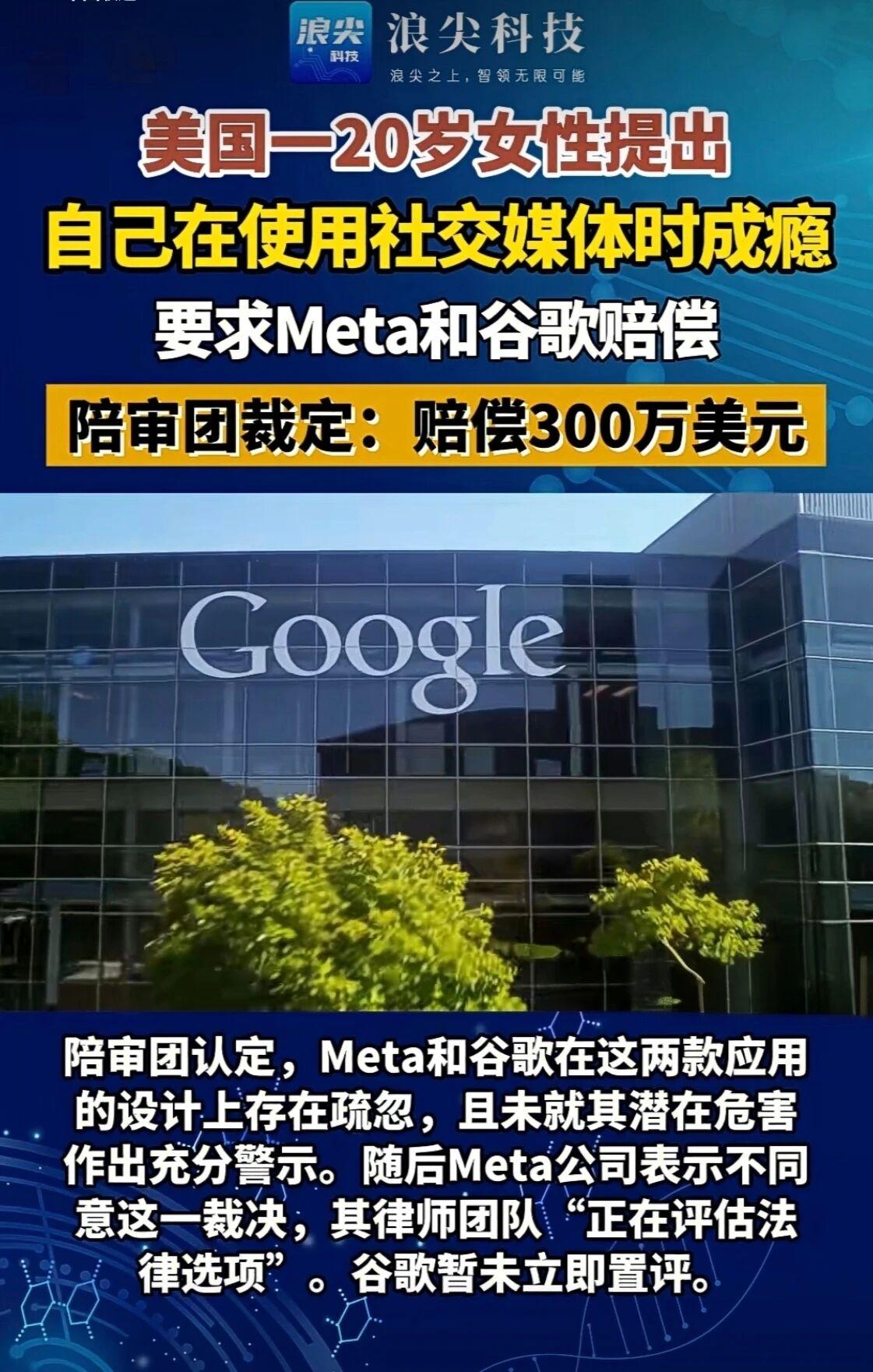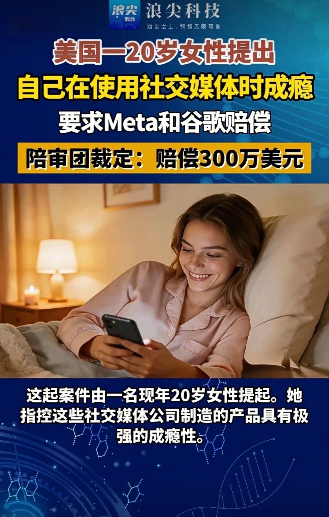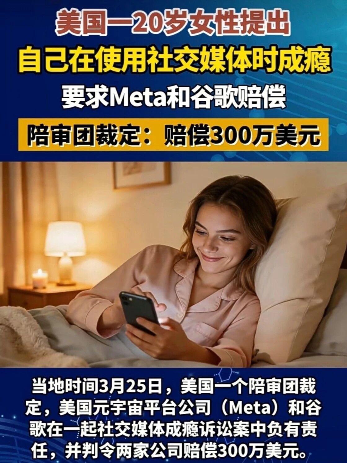 Meta、谷歌赔300万!美国20岁女孩告赢社交媒体成瘾案