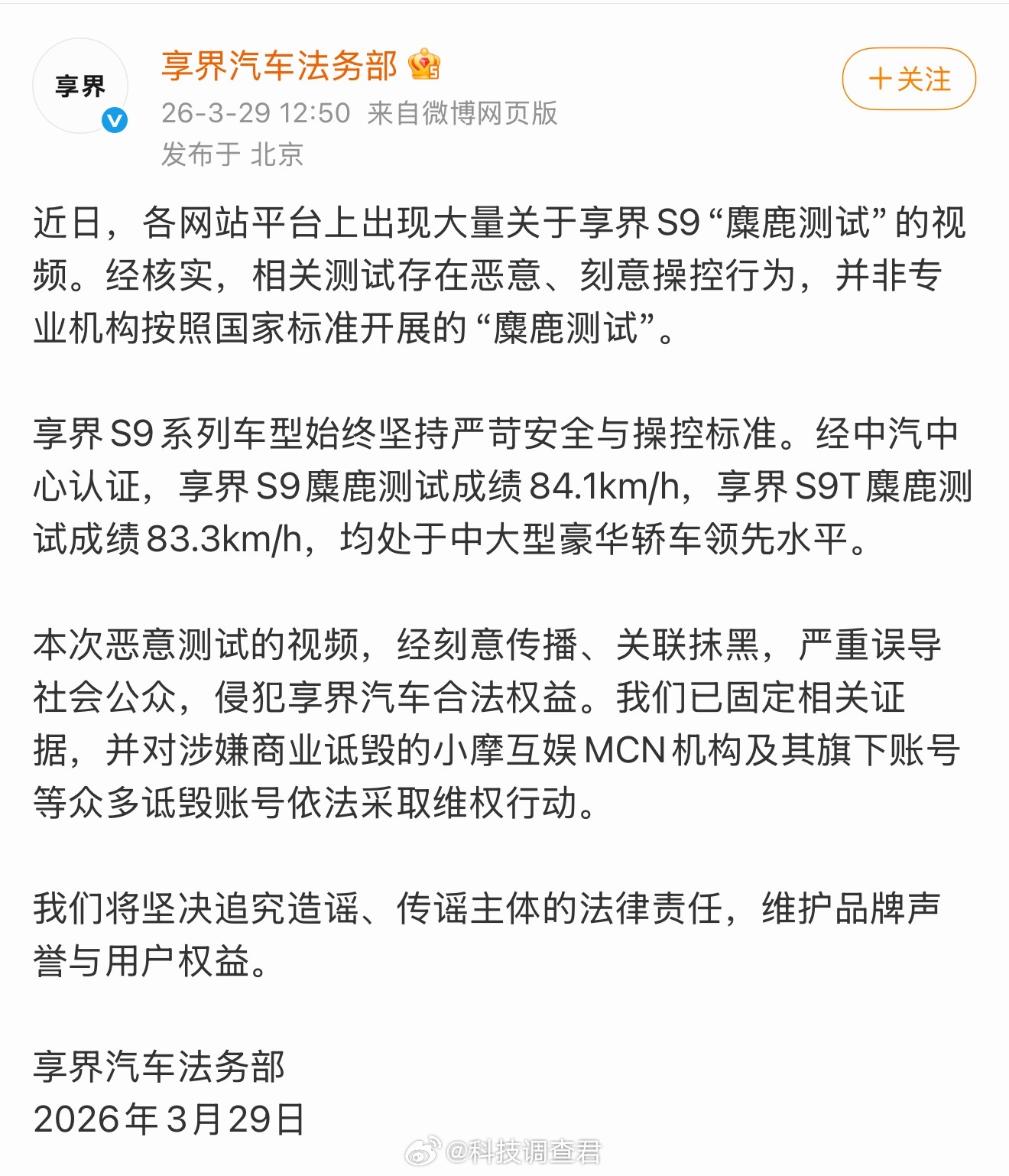 享界汽车法务部声明