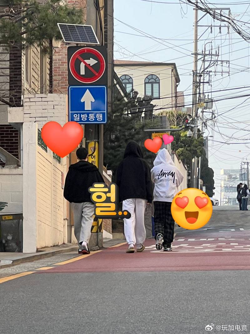 Keria、Peyz、Doran 三人组被粉丝偶遇,从衣服上看是不同的两天