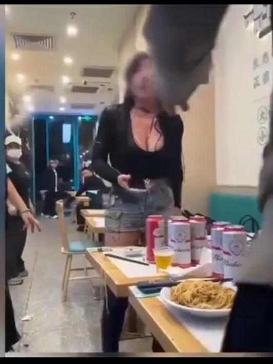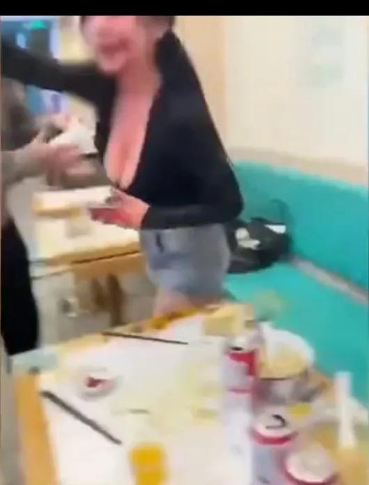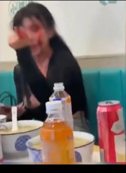 俩闺蜜在餐厅吃饭,竟然打起来了,黑衣女子被打的脸上手上都在流血。 好的时候是闺蜜