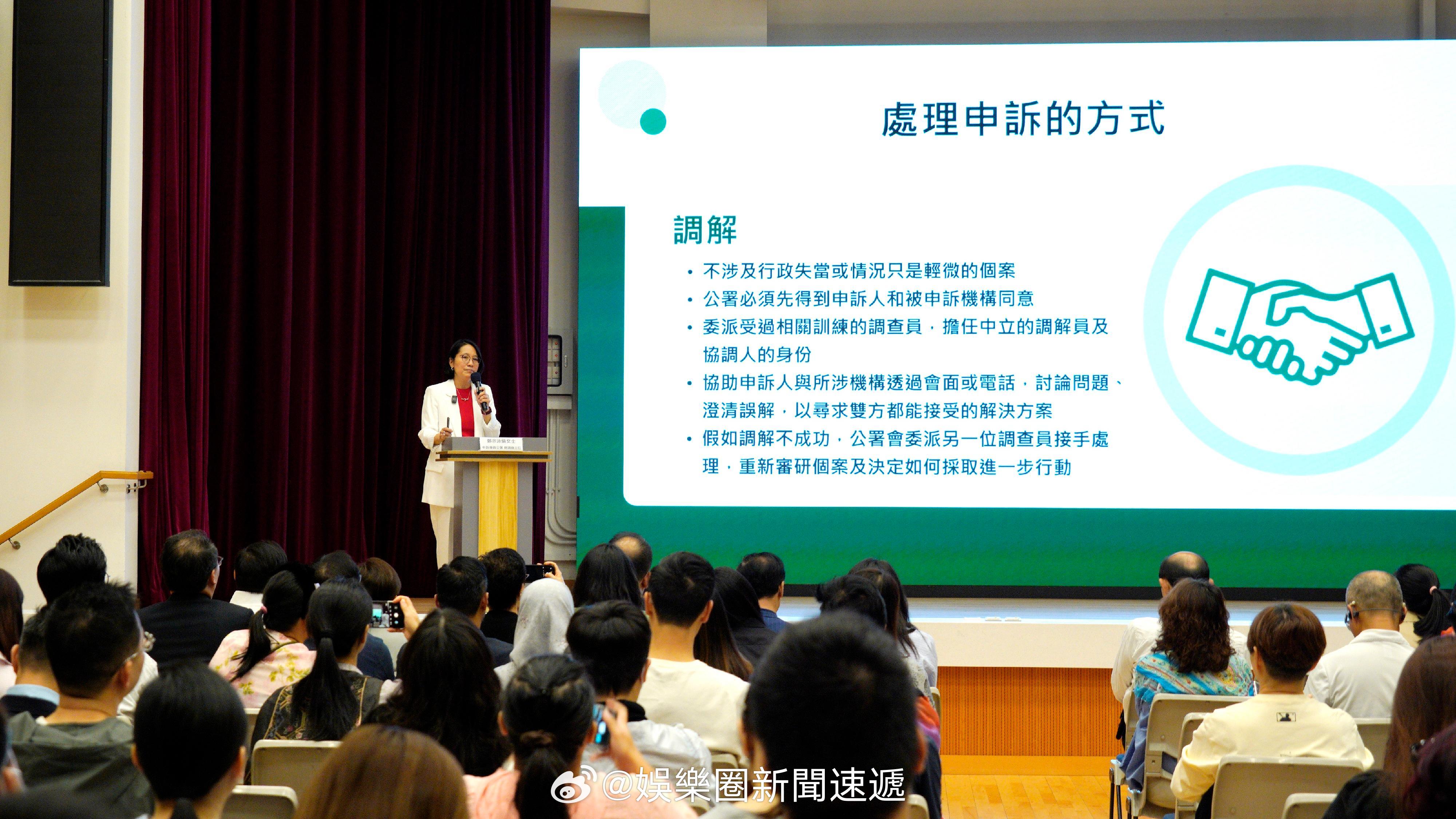 香港申诉部门香港申訴監督 「香港申訴專員學院為區議員舉行公共行政與你 講座..」香港申訴部門申訴專員公署轄下香港國際申訴專員學院前日(三月二十七日)首次走進社區,在禮頓山社區會堂舉辦首場講座,旨在向區議員和議員助理介紹公署的職能及工作,讓他們在向市民提供協助時更能掌握公署如何處理市民的申訴和為他們解決困難。講座由公署總調查主任主講,重點闡述申訴專員陳積志為公署提出的三大策略性方向及工作成果,透過倡導調解及跨部門協作,推廣正面申訴文化,積極促進良政善治,防範行政失當,切實排解市民的憂難,從而增加市民的幸福感和獲得感。