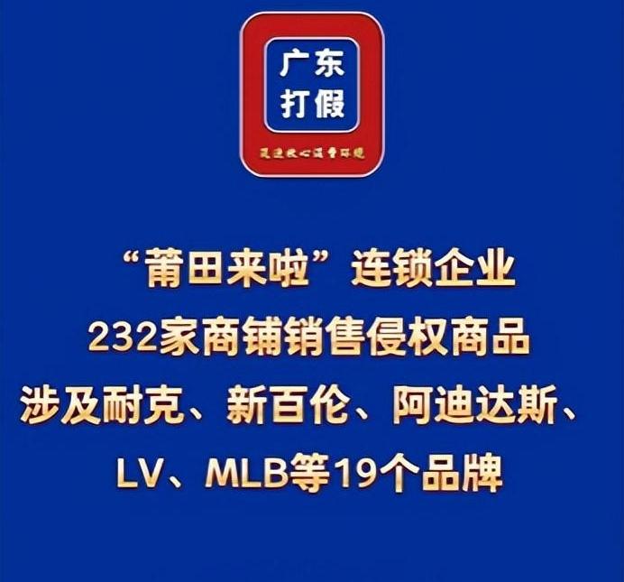 重磅!全国232家店铺一夜被查,假冒名牌产业链彻底覆灭 2025年4月18日,市场监管总局组织全国28省、227县区联合执法,对“莆田来啦”连锁体系突击查处。 共查获232家售假店铺,涉耐克、LV、阿迪达斯等19个国际品牌,违法经营额654.4万元。 现场没收侵权鞋服超万件,罚款253.9万元,5起案件移送公安。 此次全国联动打假,彻底摧毁规模化侵权网络,严打加盟式售假乱象。