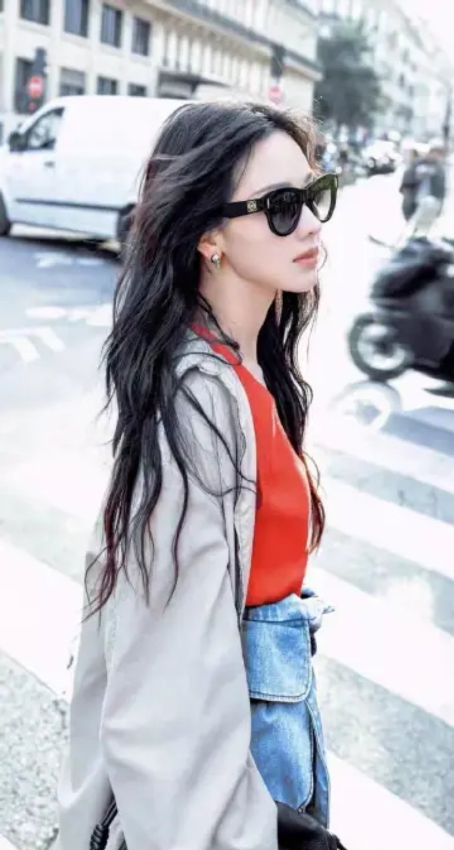 陈都灵金丝眼镜清冷智感金丝眼镜凸显清冷智感,造型简约却极具辨识度,红绿灯大片演