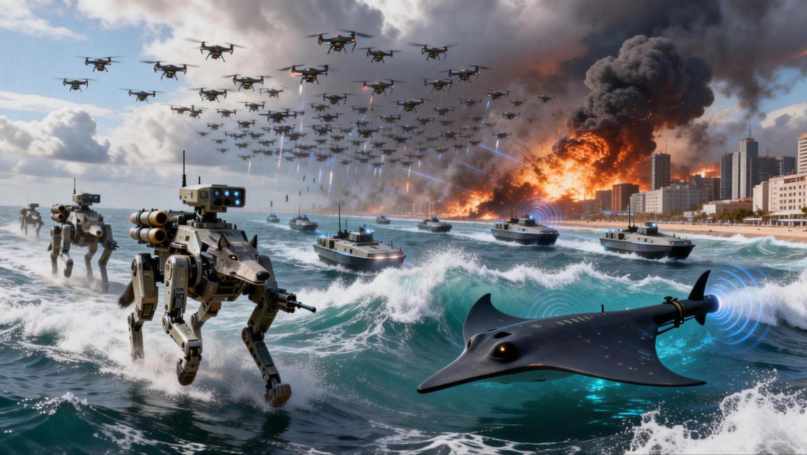 厉害了我的国!我国海陆空“无人军团”全域亮剑,重新定义未来战场,地上群狼突进,天上蜂群蔽日,海上利刃潜行,一套全域作战组合拳,直接刷新世界对未来战争的认知,这就是中国智造的硬核底气,不服不行! 地面之上,新一代机器狼群霸气登场,侦察、打击、保障分工明确,语音手势双操控,空地协同一键调配,成为地面作战的“致命尖兵”;VU-T10无人装甲车火力拉满,速射炮、反坦克导弹按需切换,强电磁干扰下依旧稳如泰山,贯穿作战全程。 低空之下,无人飞枪凌空破袭,挂载步枪精准狙杀,与机器狼完成空地协同,隐蔽猎杀不留痕迹;“阿特拉斯”无人机蜂群堪称“空中铁军”,一名操作员可操控96架,3秒一发精准投射,自主识别目标一击命中,实力碾压全场。 深海之中,无人艇编队自主编队、灵活避障,包抄围堵精准高效;“魔鬼鱼”仿生潜水器幽暗水域潜行无阻,声呐探测直达深海,续航千里守护海疆,切断通信也绝不迷路。 从地面到高空,从浅海到深海,中国“无人军团”实现海陆空全域覆盖,智能化、模块化、协同化拉满,每一款装备都彰显着中国科技的飞跃。没有花里胡哨的宣传,全是实打实的硬实力,这就是中国国防的底气,这就是大国重器的锋芒! 以前我们追着世界跑,现在我们领着世界冲!中国“无人军团”不仅守护万里山河,更在重新定义未来战场,每一份突破,都是民族复兴的底气,为中国智造点赞,为伟大祖国自豪。