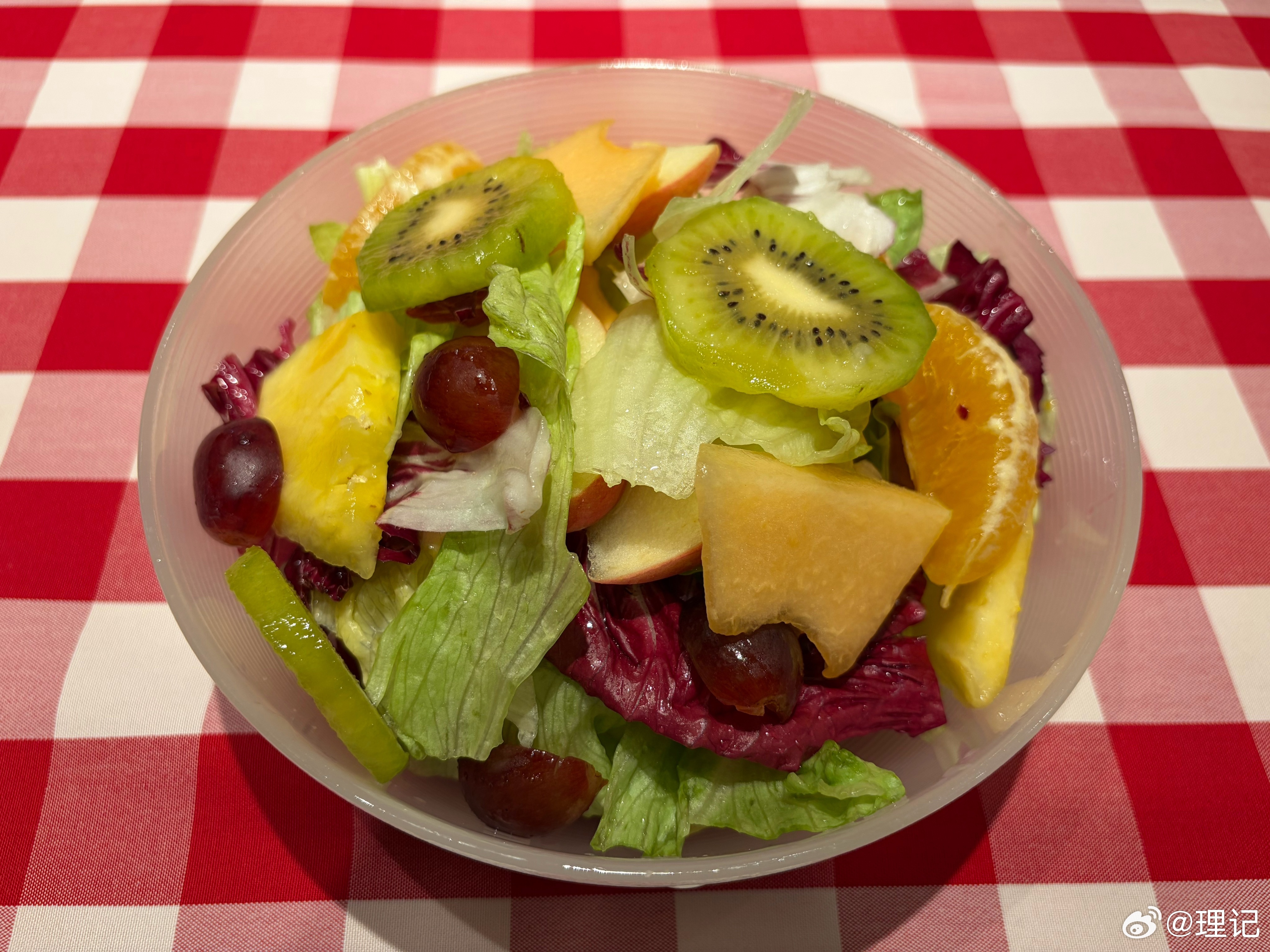 首先必点果蔬大拌菜,这菜一定是先上的。你说这菜含糖量咋样,水果里有葡萄猕猴桃甜瓜菠萝苹果,这都是含糖度不低,但GI并不高。