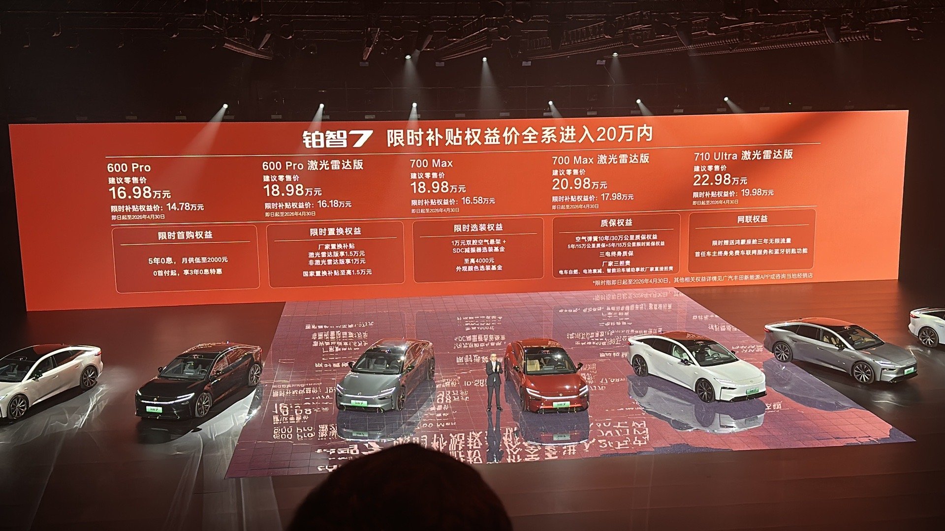 广汽丰田铂智7千呼万唤始出来,正始售价公布,补贴后入门版14.78万,顶配19.98,打入15万内和20万内。这是丰田首款鸿蒙座舱的纯电大轿车,相当于B级车的钱买到D级车。配置方面一改合资风格,华为鸿蒙座舱、激光雷达智驾、双腔空悬,这些以前30万以上才有的配置,现在20万内就能配齐,加几千块就能选双腔空悬,空悬质保还能延到10年30万公里,不用担心坏了修不起。另外丰田还给了厂家三担责,写进合同里的,电车自燃直接赔新车,电池衰减超标免费换,首购车主还能5年0息贷款,置换也有补贴,性价比挺香的。现在车已经到4S店了,过两天我们也会去探店,给大伙试试车~铂智7上市限时补贴权益价14.78万起丰田铂智7限时补贴权益全系20万内