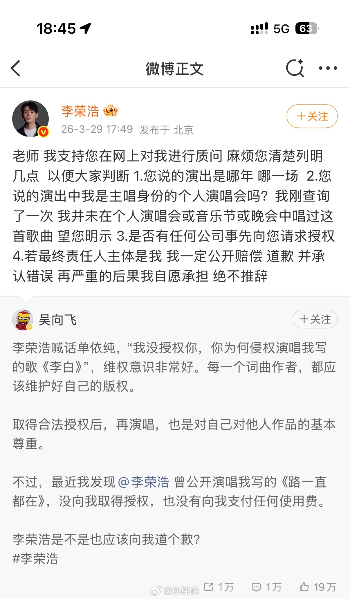 这算不算李荣浩给单依纯指了一条明路吴向飞想蹭李荣浩,但是我感觉失败了李荣浩的回应,算不算给单依纯指了一条明路另外,单依纯今晚还唱吗