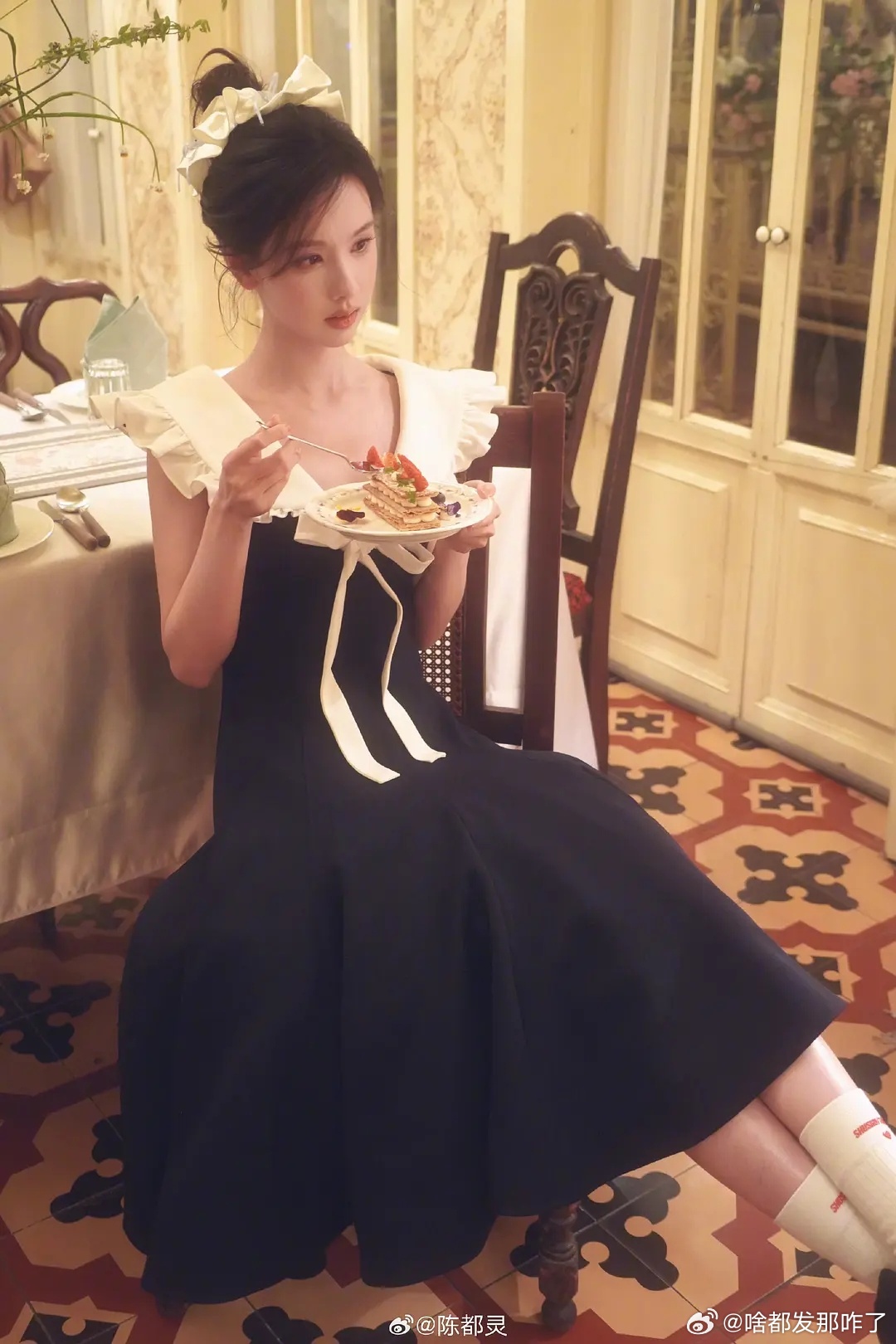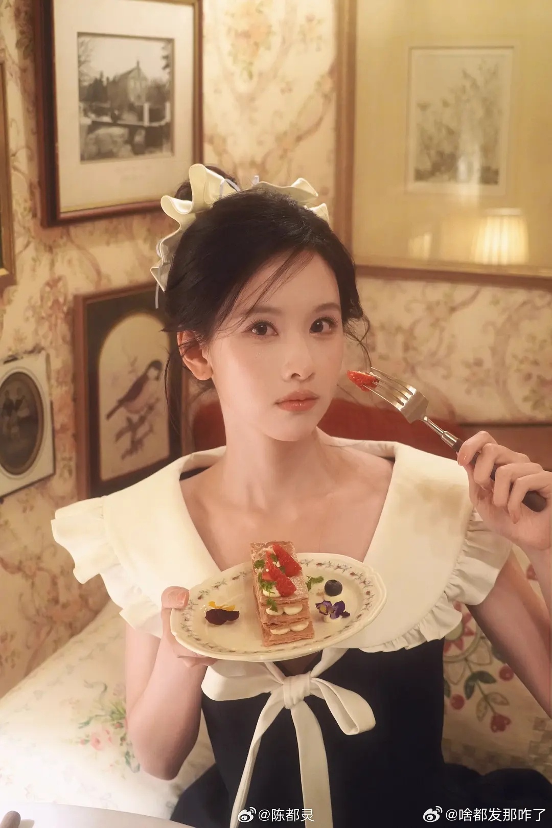 陈都灵油画风写真,这是玩偶里的朋友聚会妆造和场景吗?尊嘟好美萌