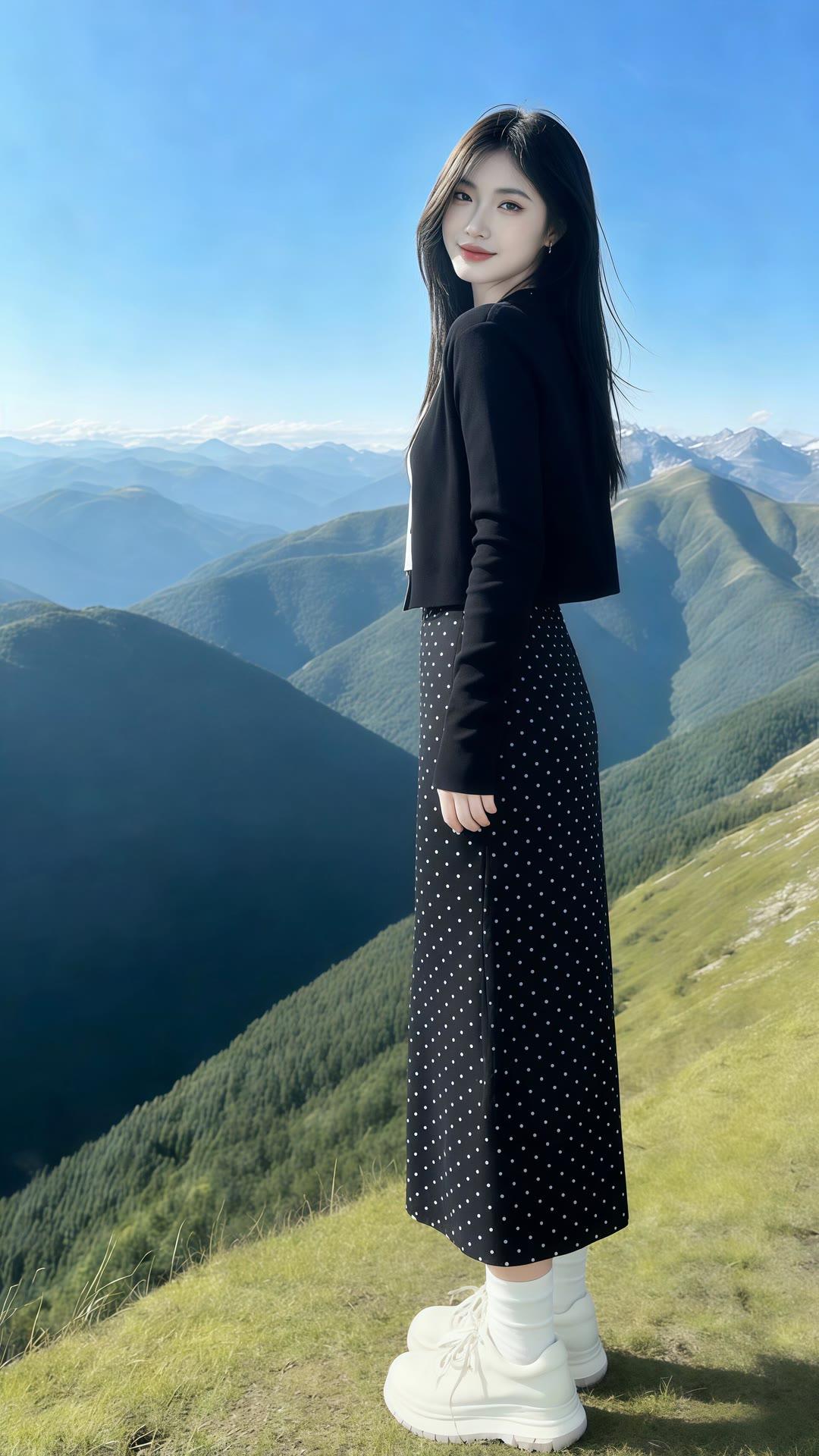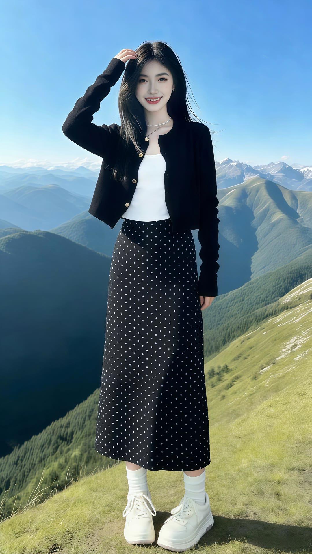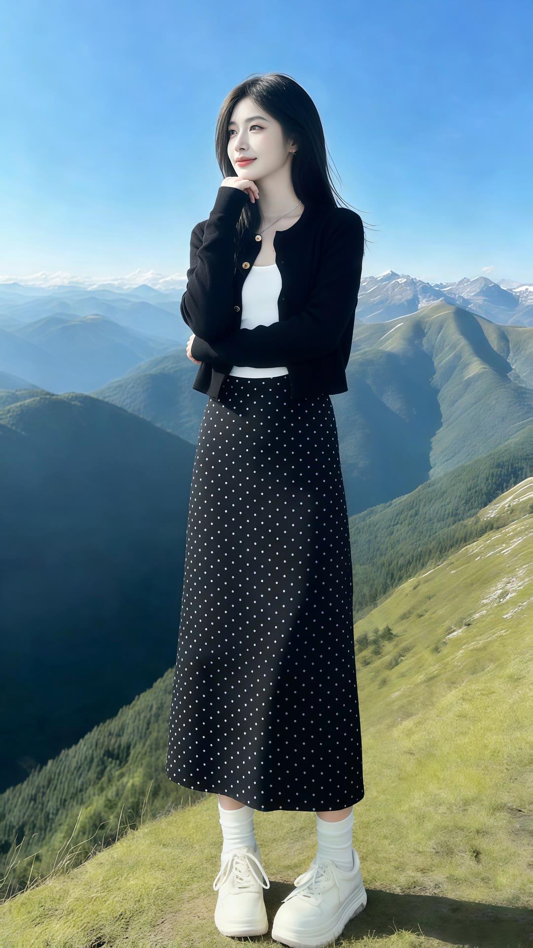 都市时尚少女,黑裙黑丝高跟鞋,优雅街拍
