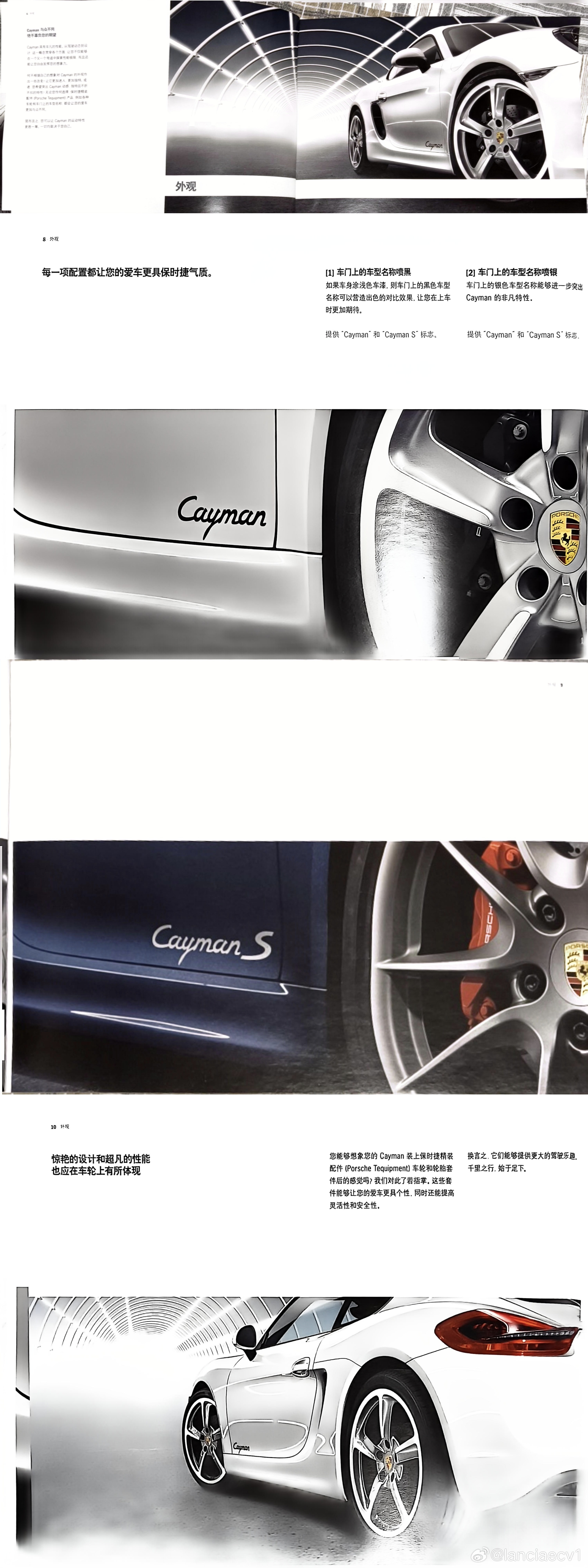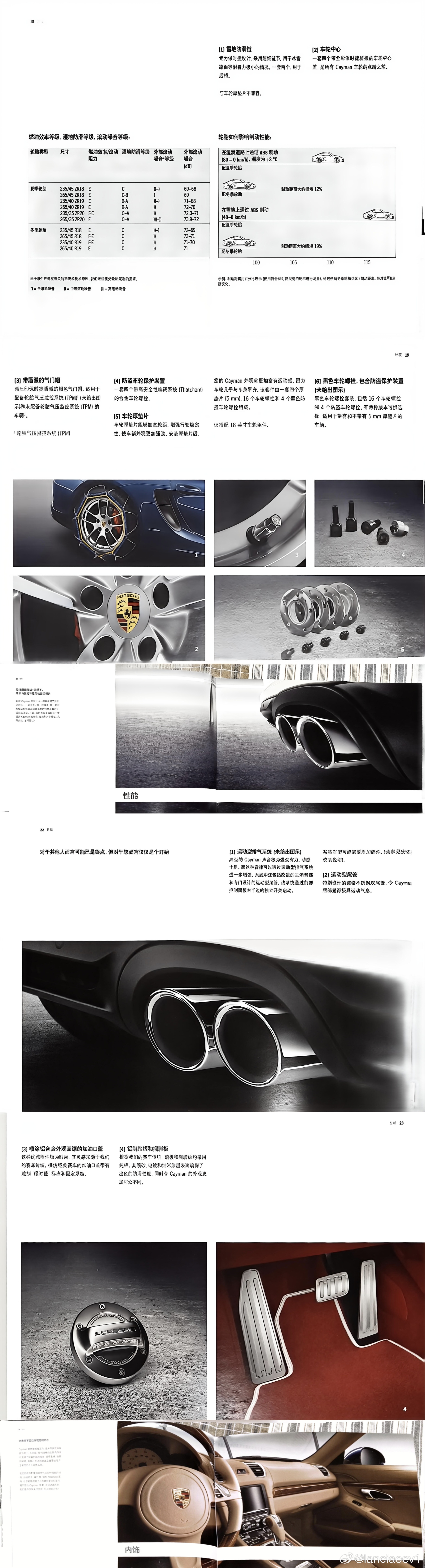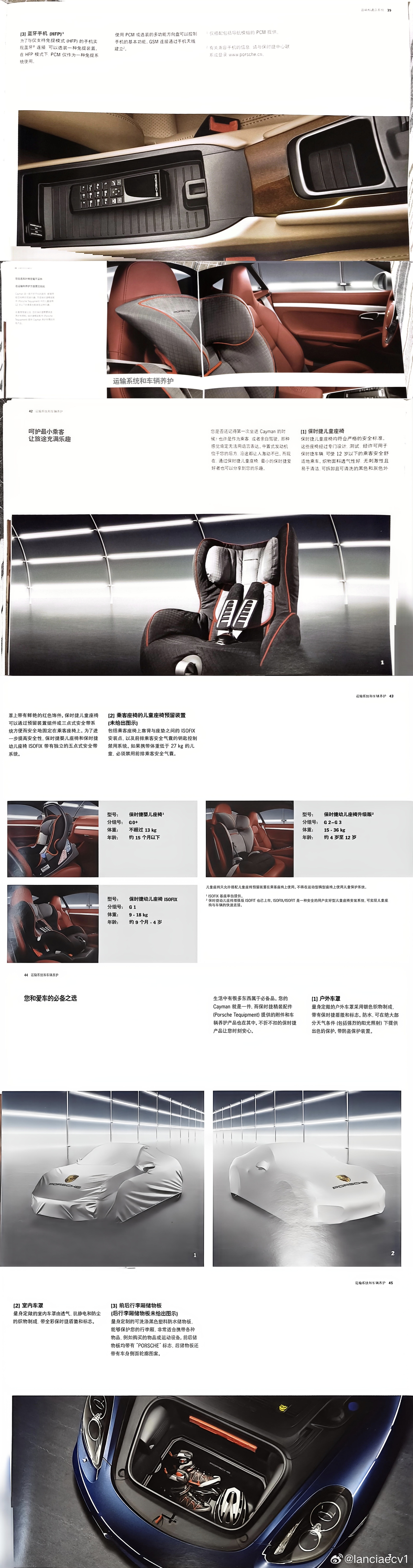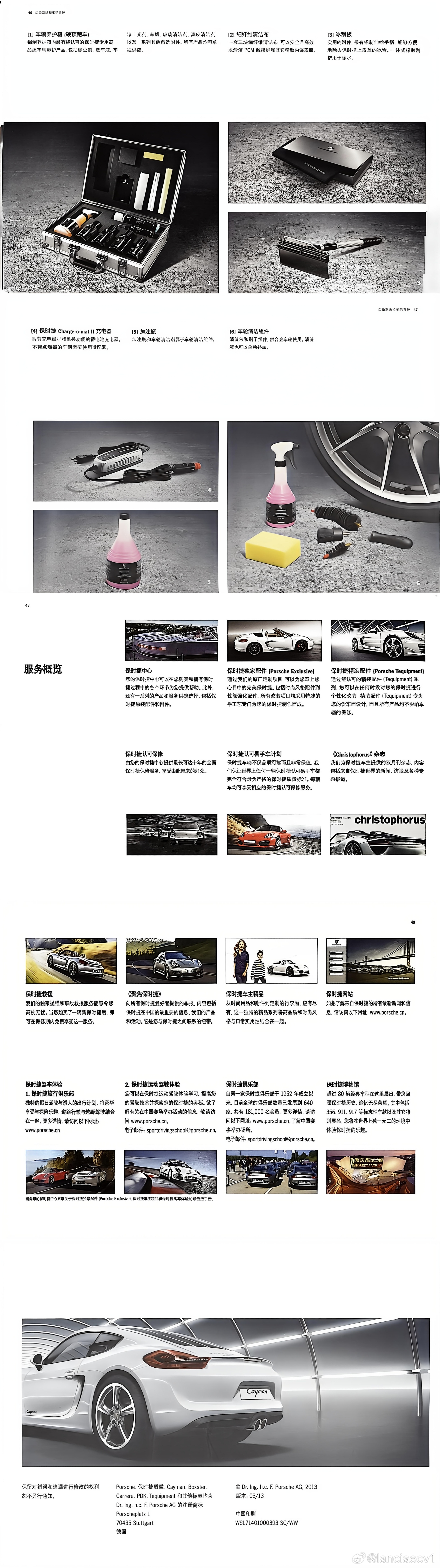扫描了一下2013年的cayman 981 tequipment附件型录,不得不说,我是头一次知道保时捷给cayman还准备了官方防滑链。另外当年这个蓝色金属漆真的是让人魂牵梦萦的存在。