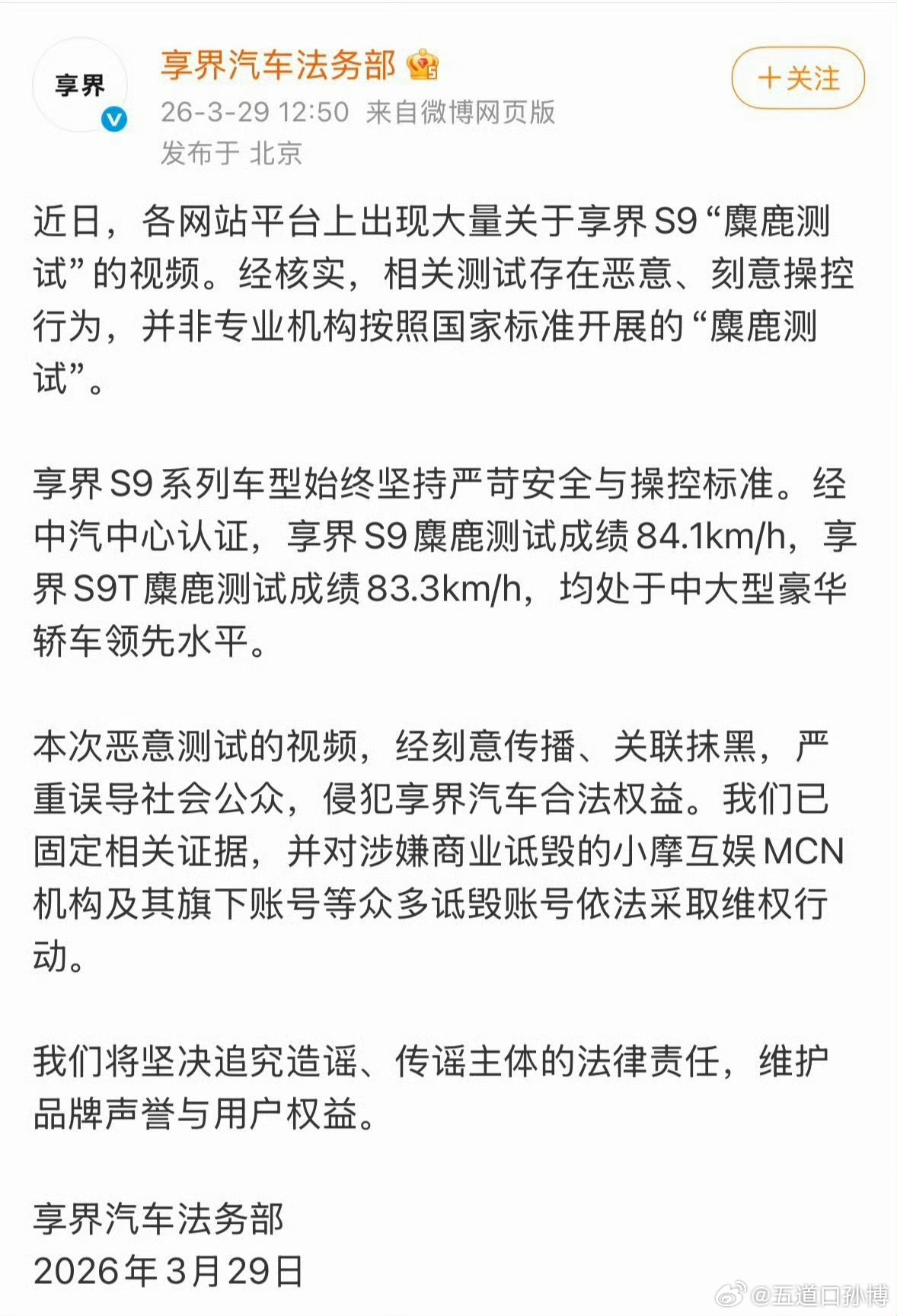 享界汽车回应网传S9麋鹿测试视频 那个视频之前在各个WX群疯传,很多吃瓜的起哄的都在嘲讽。,恶意剪辑的视频确实给享界S9带来了非常负面,甚至是非常恶劣的影响。