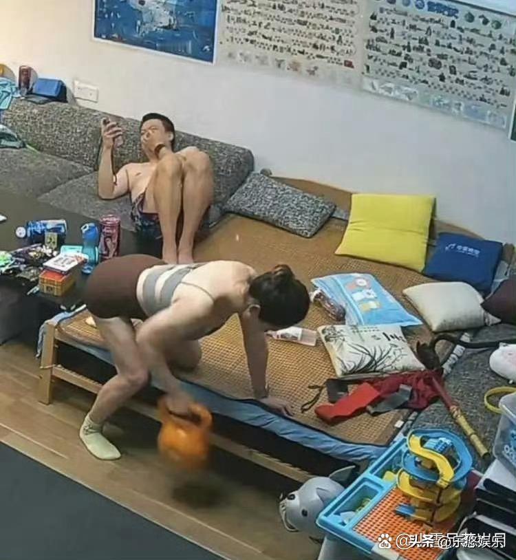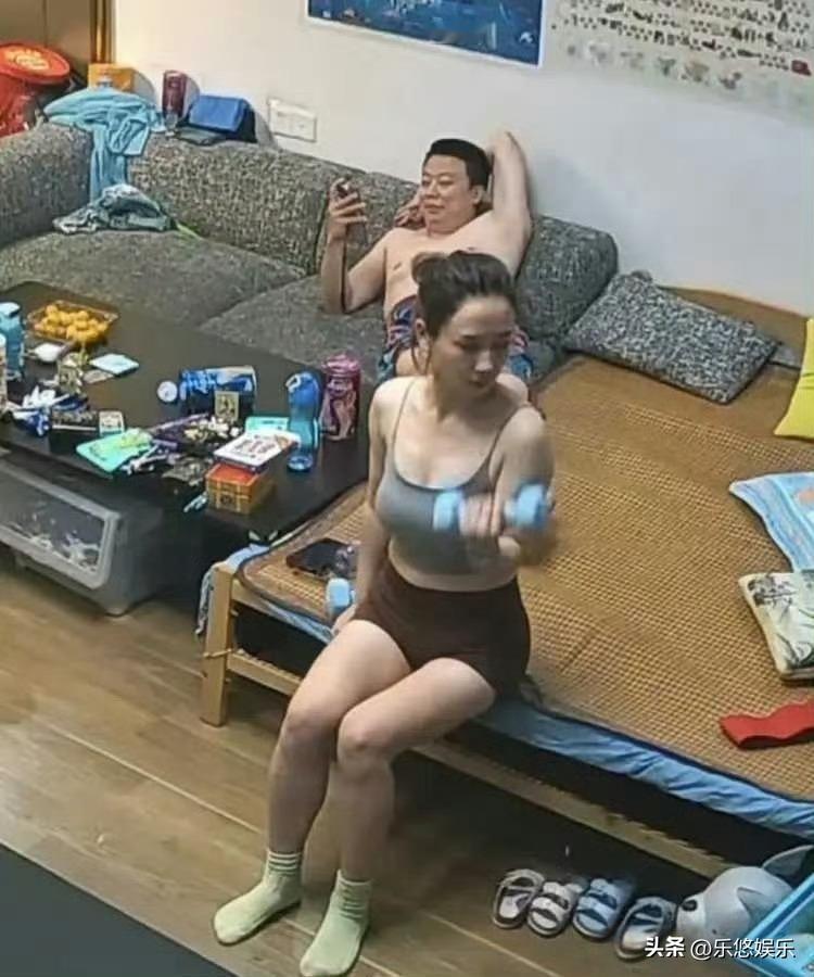 笑死我了,大厅里男人玩手机,老婆在锻炼身体,老婆都这样了男的看不出来吗!大家猜猜