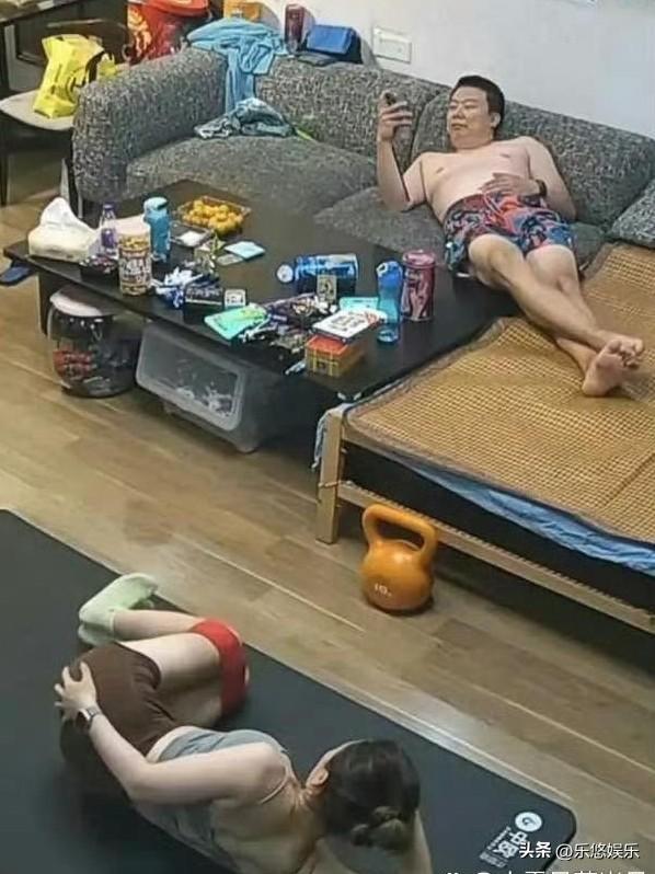 笑死我了,大厅里男人玩手机,老婆在锻炼身体,老婆都这样了男的看不出来吗!大家猜猜看图片中的意思吗?