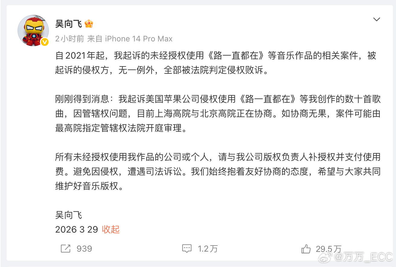 大概捋了一下,这位吴作词人认为李荣浩侵权唱了他的歌,但实际上这首歌是很多年前他为陈奕迅写的,版权应该属于陈奕迅公司也就是环球。