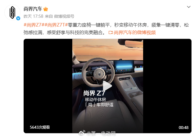 零重力座椅(副驾),支持一键躺平和座椅按摩 新能源汽车鸿蒙智行