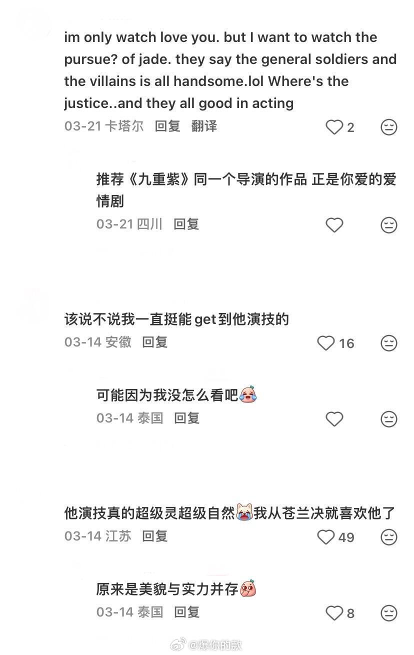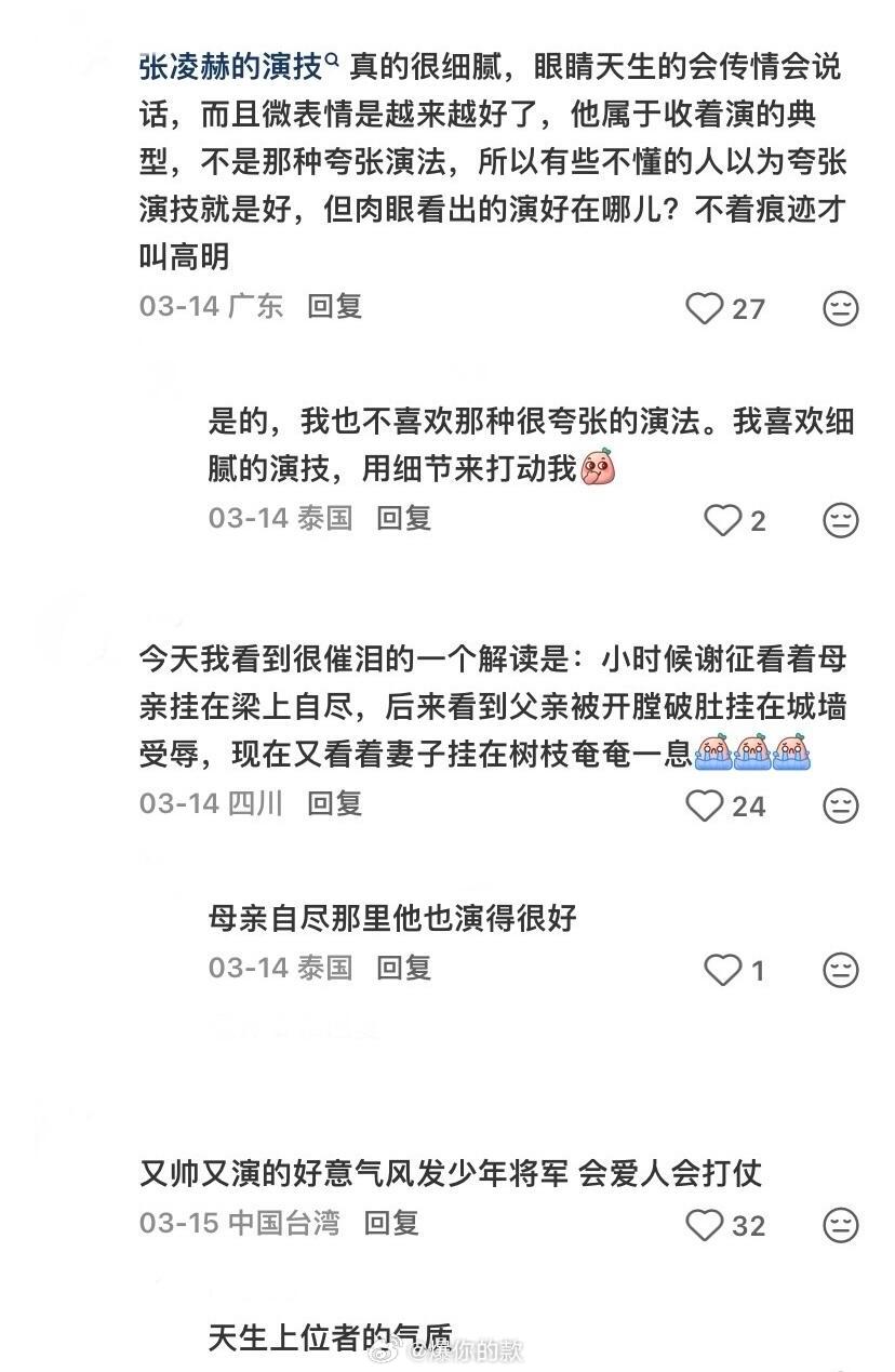 外网评价张凌赫演技外网评价张凌赫演技首先,我不是张凌赫粉丝,也没看过他几部剧,但在逐玉中他的表现确实令我挺意外的,情感表达能让我共情,我认为他演出了我想要的感觉。18-19集真的哭惨了,战争最苦的还是底层百姓。这两集也是目前外网讨论演技最多的两集,选取并翻译了洋抖上外国网友一些言之有物的客观评价,供大家参考。