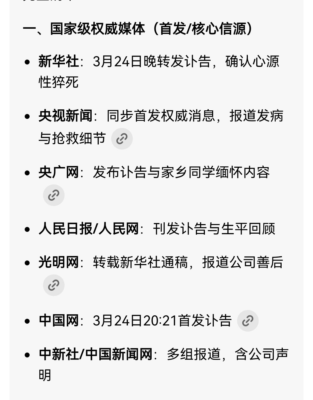 图一是项立刚自我猜测和臆想(恐怖的是居然很多人信以为真),图二是国内各大主流平台关于华人神探李昌钰去世情况的报道,图三是国内各大主流平台关于一代名师张雪峰去世情况的报道。很明显,项立刚又在打胡乱说、制造对立。但凡他自己看过相关新闻,或者用AI查一下各方信源,就不会打胡乱说、信口齿黄。项立刚你还是专门去卖你的货吧,少说点自己不知道的事情,不要造口业。