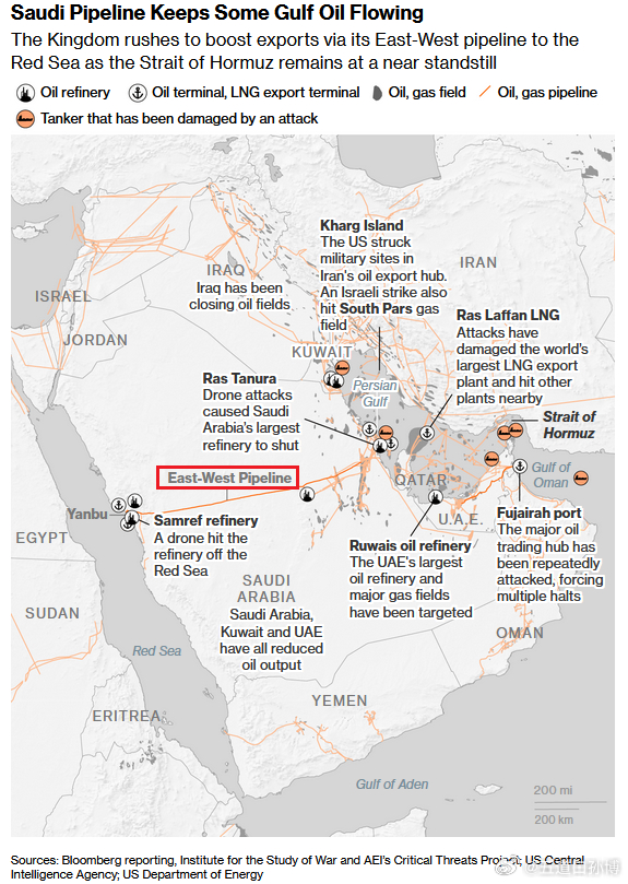 为了用对伊朗封锁霍尔姆兹海峡的举动,沙特正在加大力度利用本国的东西向输油管道。