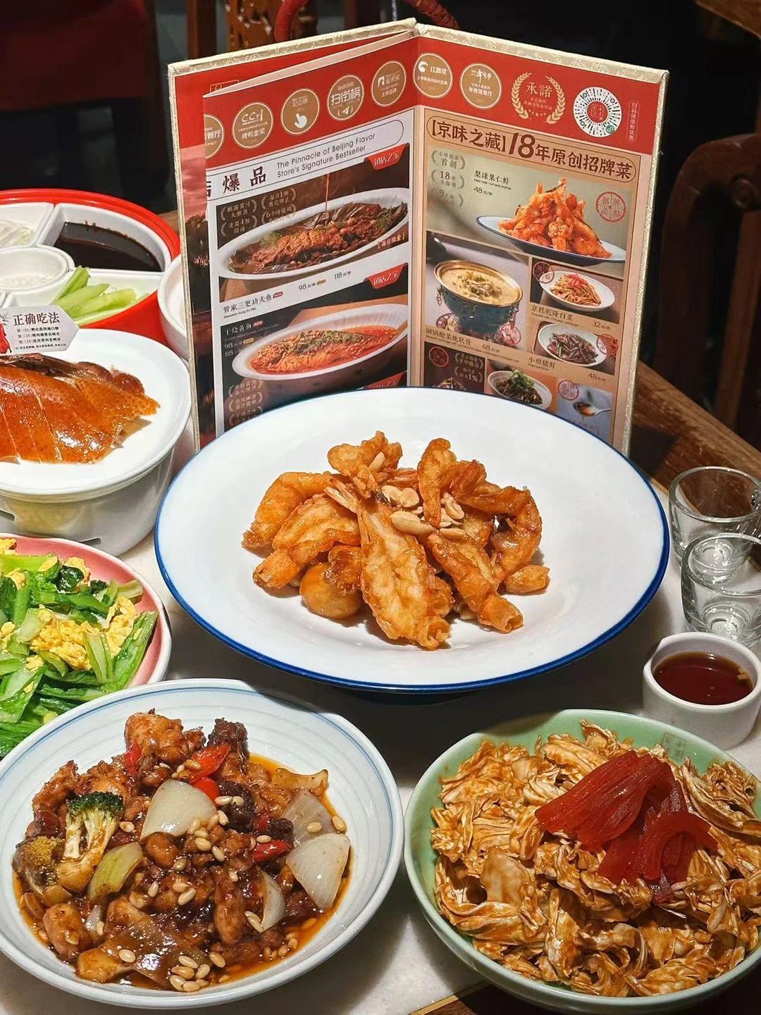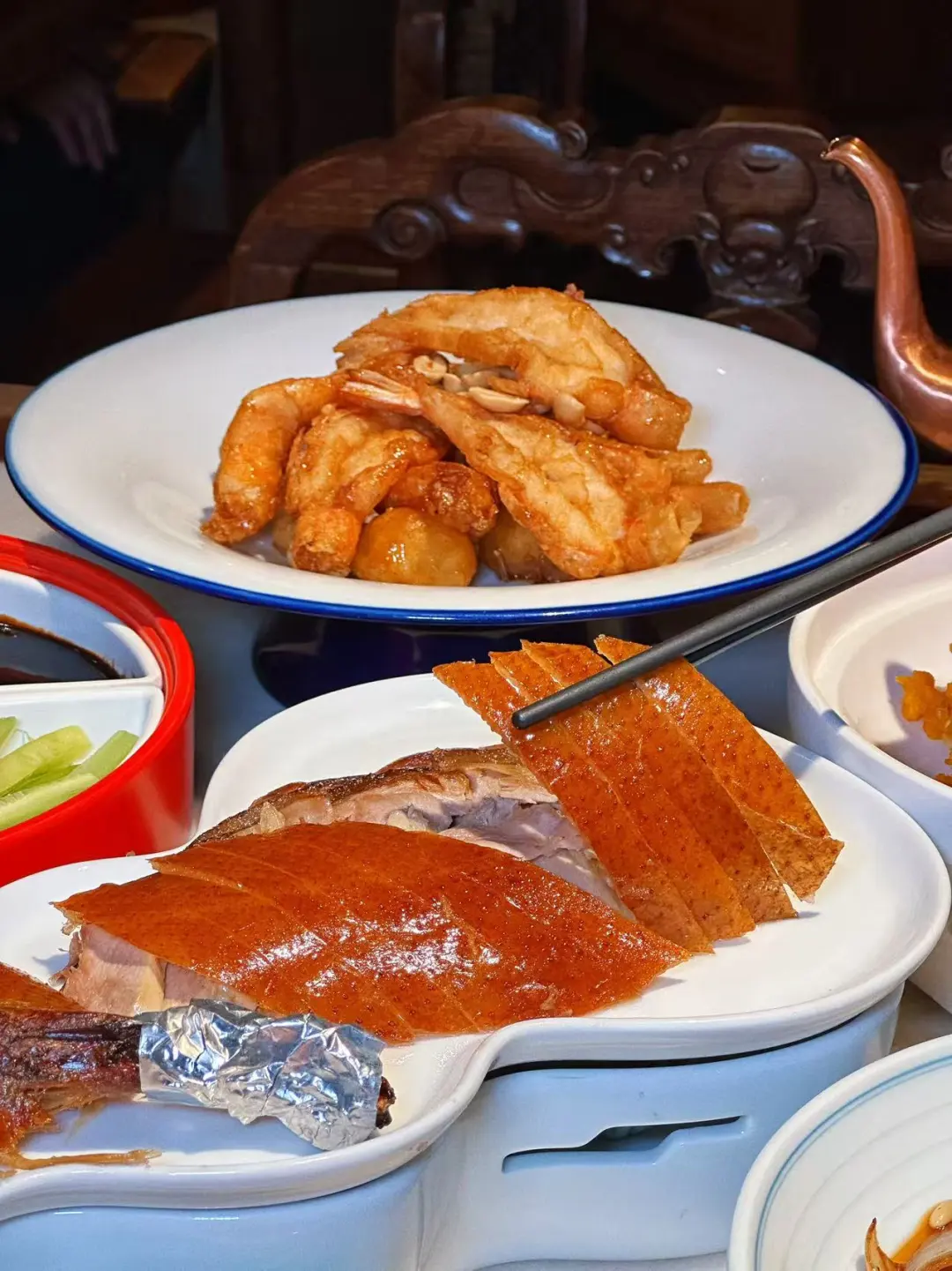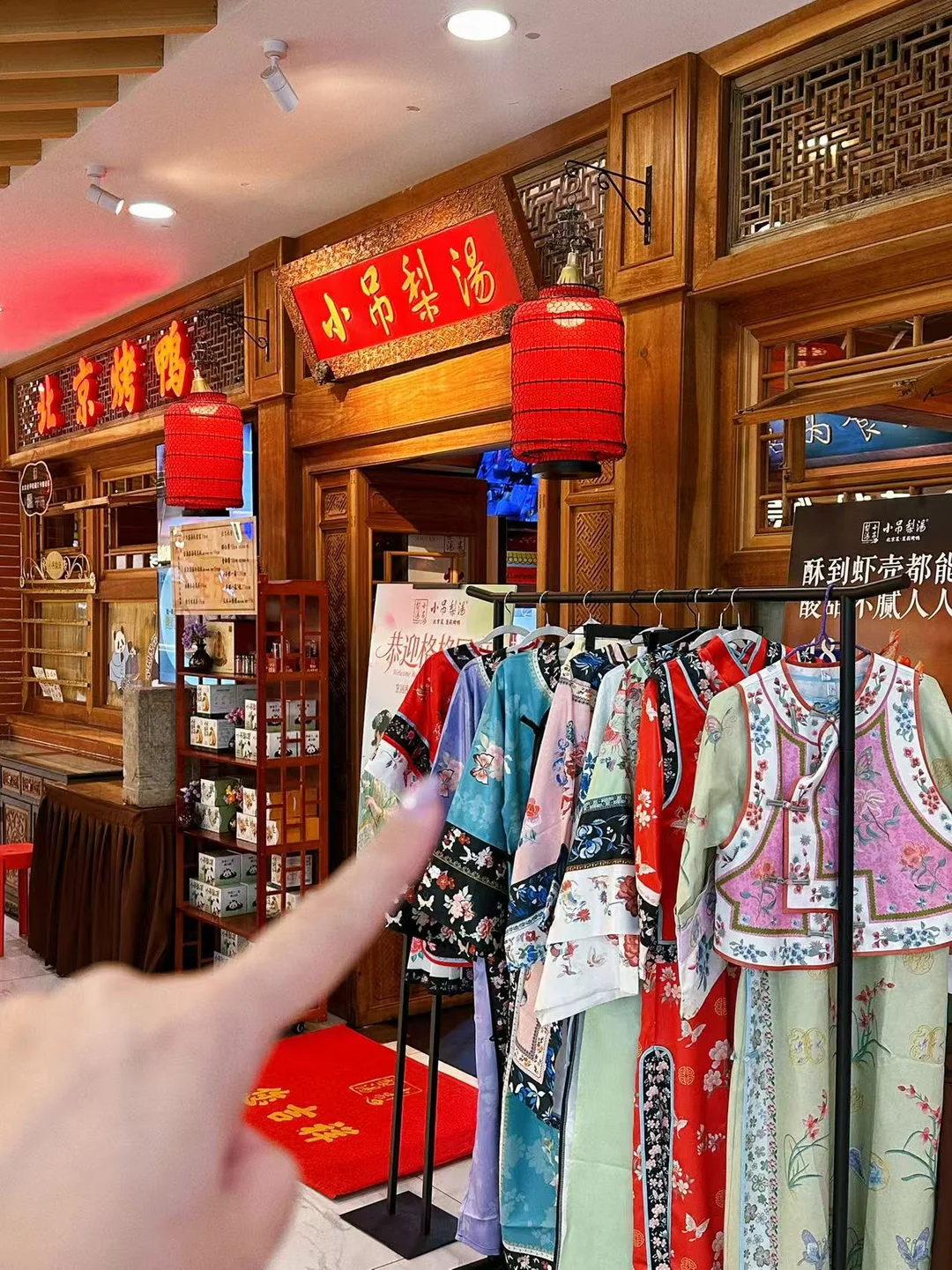 王府井逛吃新玩法 在小吊梨汤吃饭能免费换装 门店提供古风装 新中式服饰 旗袍 还搭配了簪子 扇子等道具 吃完饭换装 在王府井citywalk 轻松拍出氛围感大片 茉莉烤鸭 小吊首创茶窨工艺 通体枣红色 鸭皮酥脆 肉嫩多汁 茉莉花香与油脂交织 一口惊艳 小吊梨汤 每日凌晨4点现熬6小时 熬出天然梨胶 汤汁浓稠丝滑 清甜润喉 小煎猪肝嫩而不柴 咸香入味 好下饭 乾隆白菜麻酱裹满菜叶 脆爽可口 百吃不厌 还有多款京味家常菜 甜品小吃 朋友小聚 游客打卡都是不错的选择