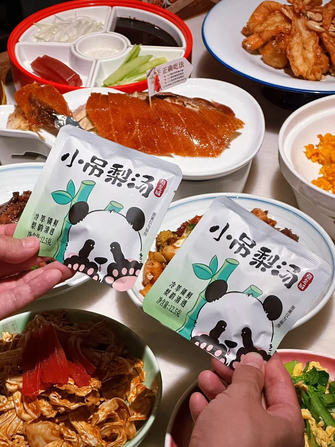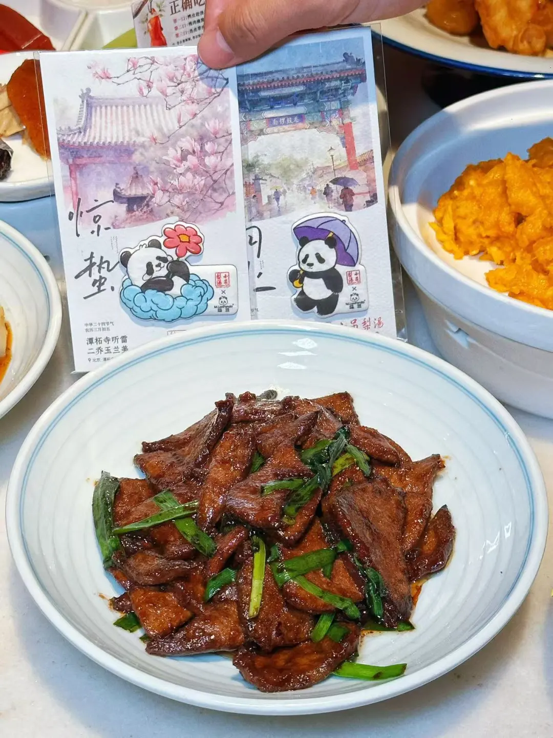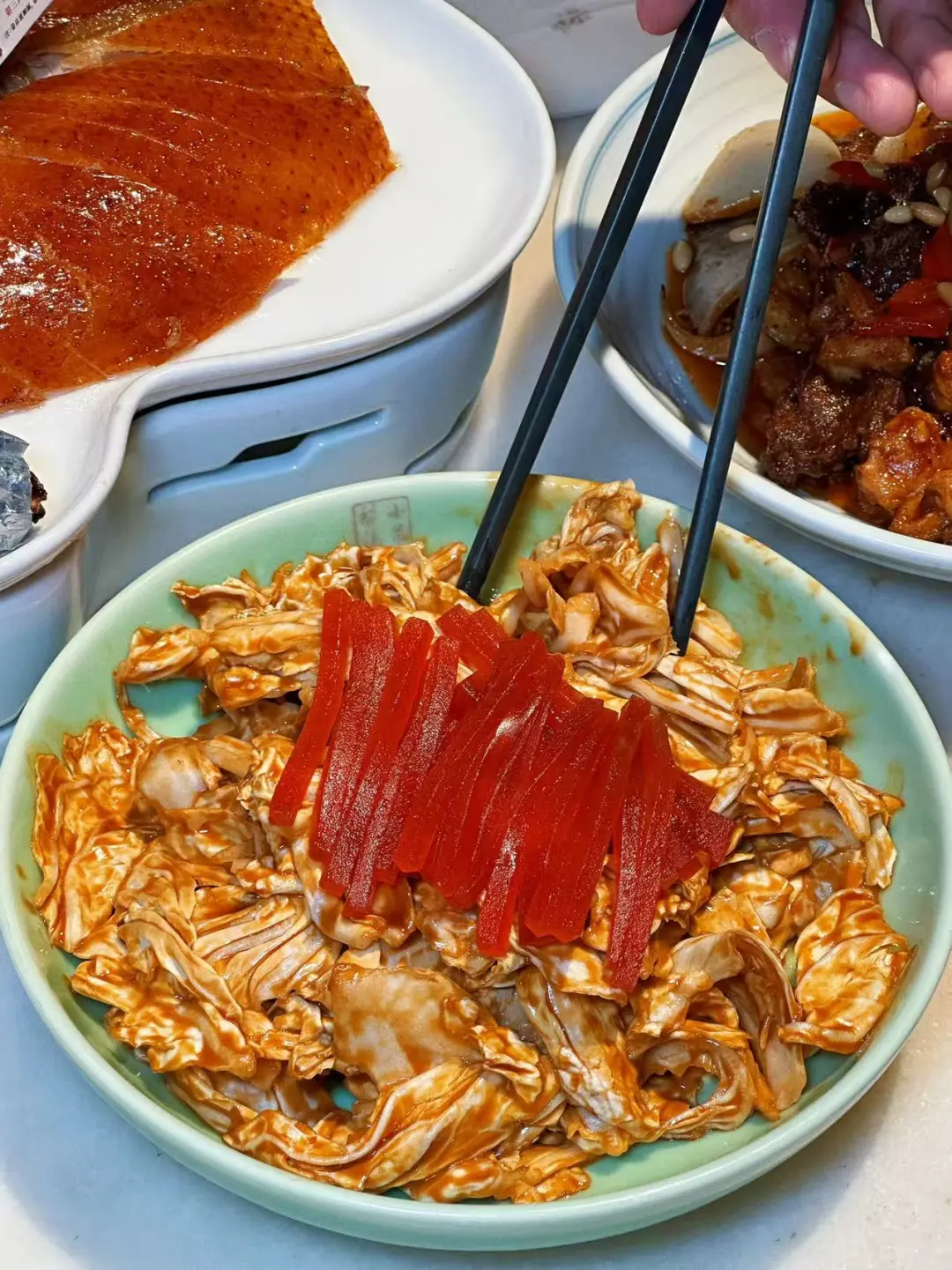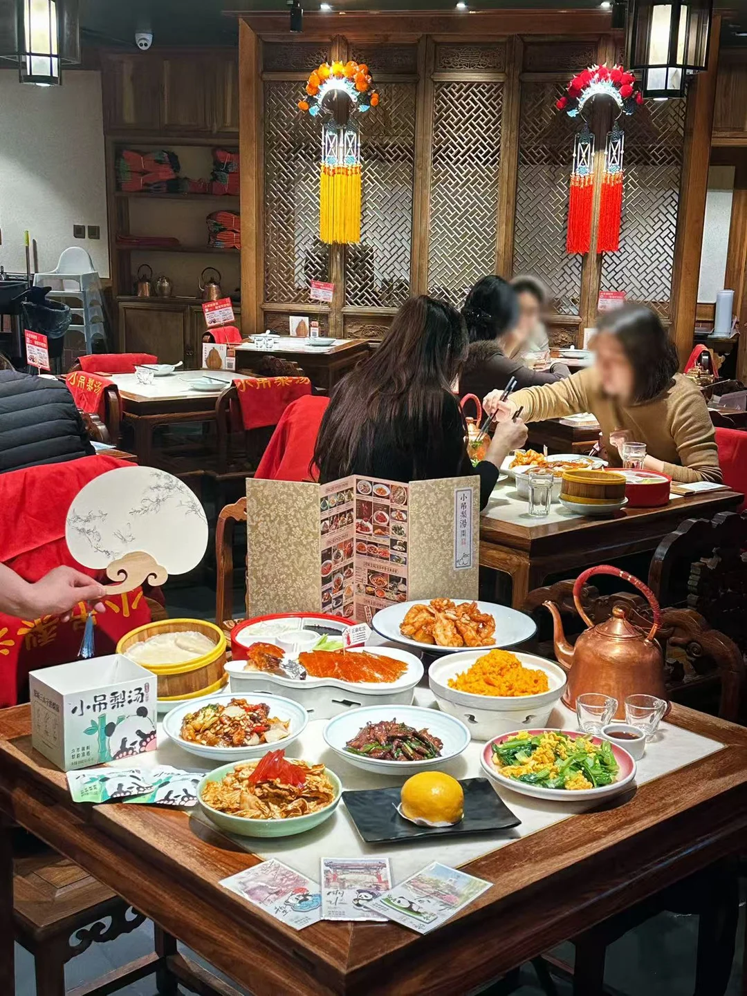 王府井逛吃新玩法 在小吊梨汤吃饭能免费换装 门店提供古风装 新中式服饰 旗袍 还搭配了簪子 扇子等道具 吃完饭换装 在王府井citywalk 轻松拍出氛围感大片 茉莉烤鸭 小吊首创茶窨工艺 通体枣红色 鸭皮酥脆 肉嫩多汁 茉莉花香与油脂交织 一口惊艳 小吊梨汤 每日凌晨4点现熬6小时 熬出天然梨胶 汤汁浓稠丝滑 清甜润喉 小煎猪肝嫩而不柴 咸香入味 好下饭 乾隆白菜麻酱裹满菜叶 脆爽可口 百吃不厌 还有多款京味家常菜 甜品小吃 朋友小聚 游客打卡都是不错的选择