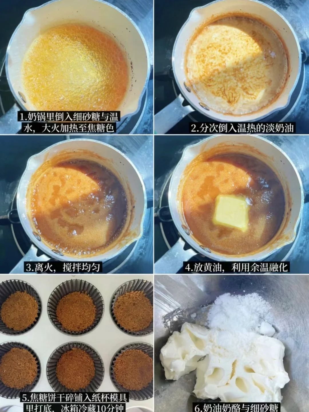 焦糖酱:细砂糖80g丨温水20g丨淡奶油110g丨黄油20g丨